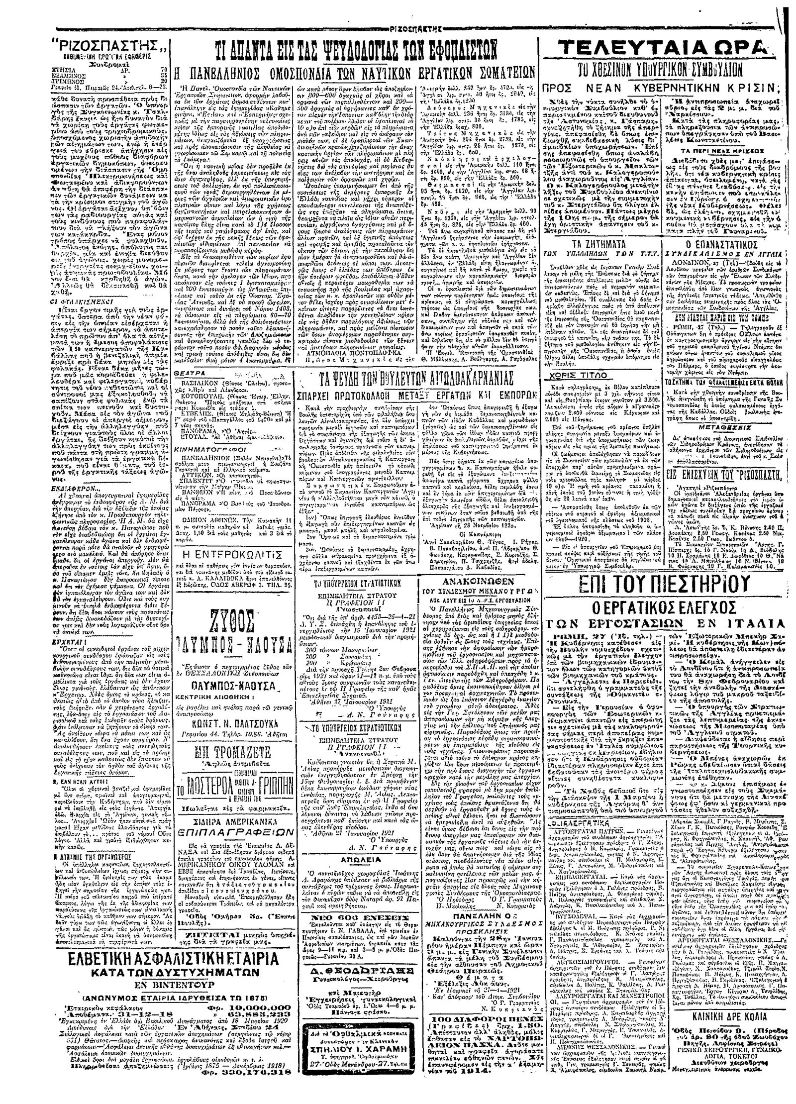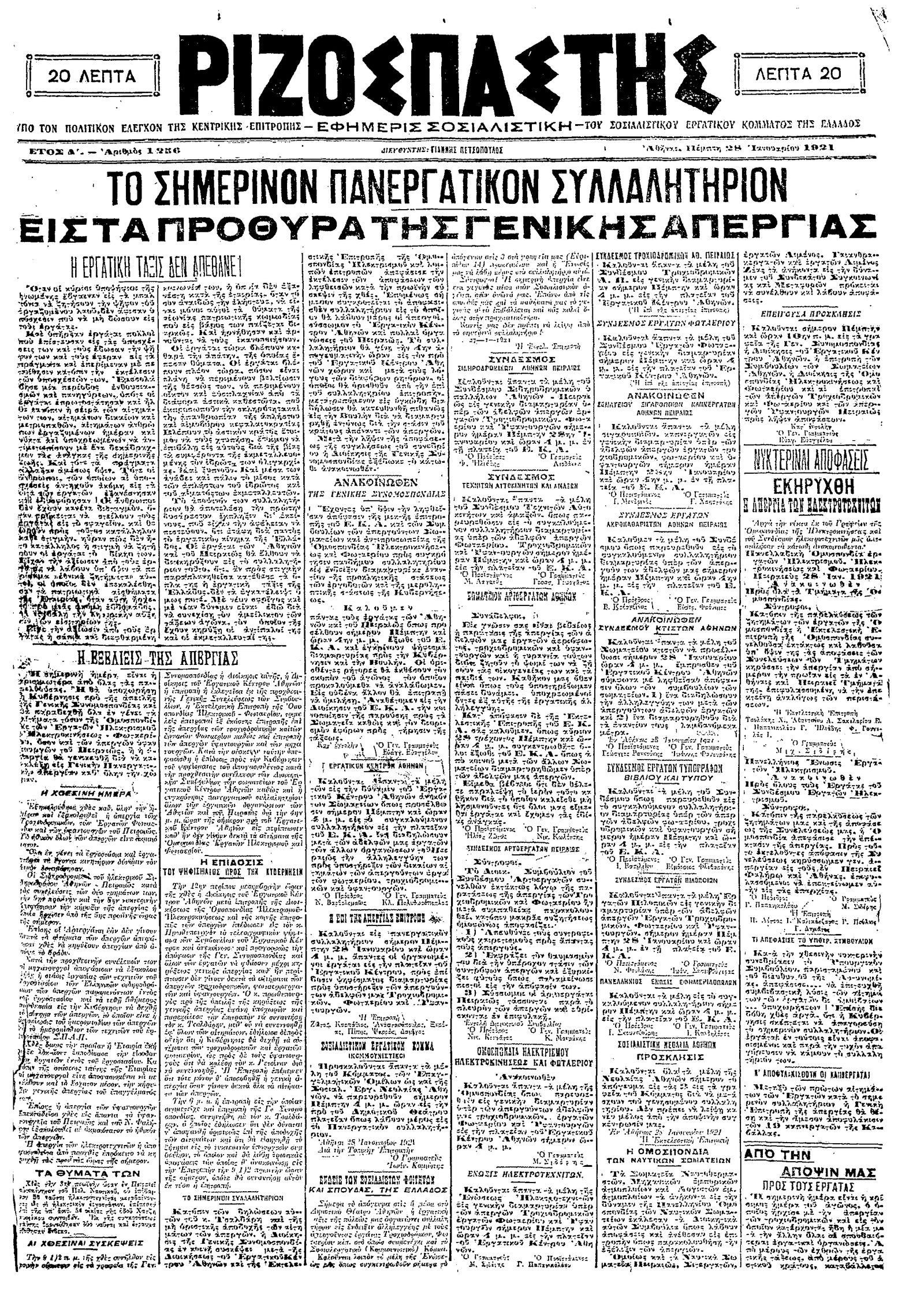 Ριζοσπάστης 28/01/1921