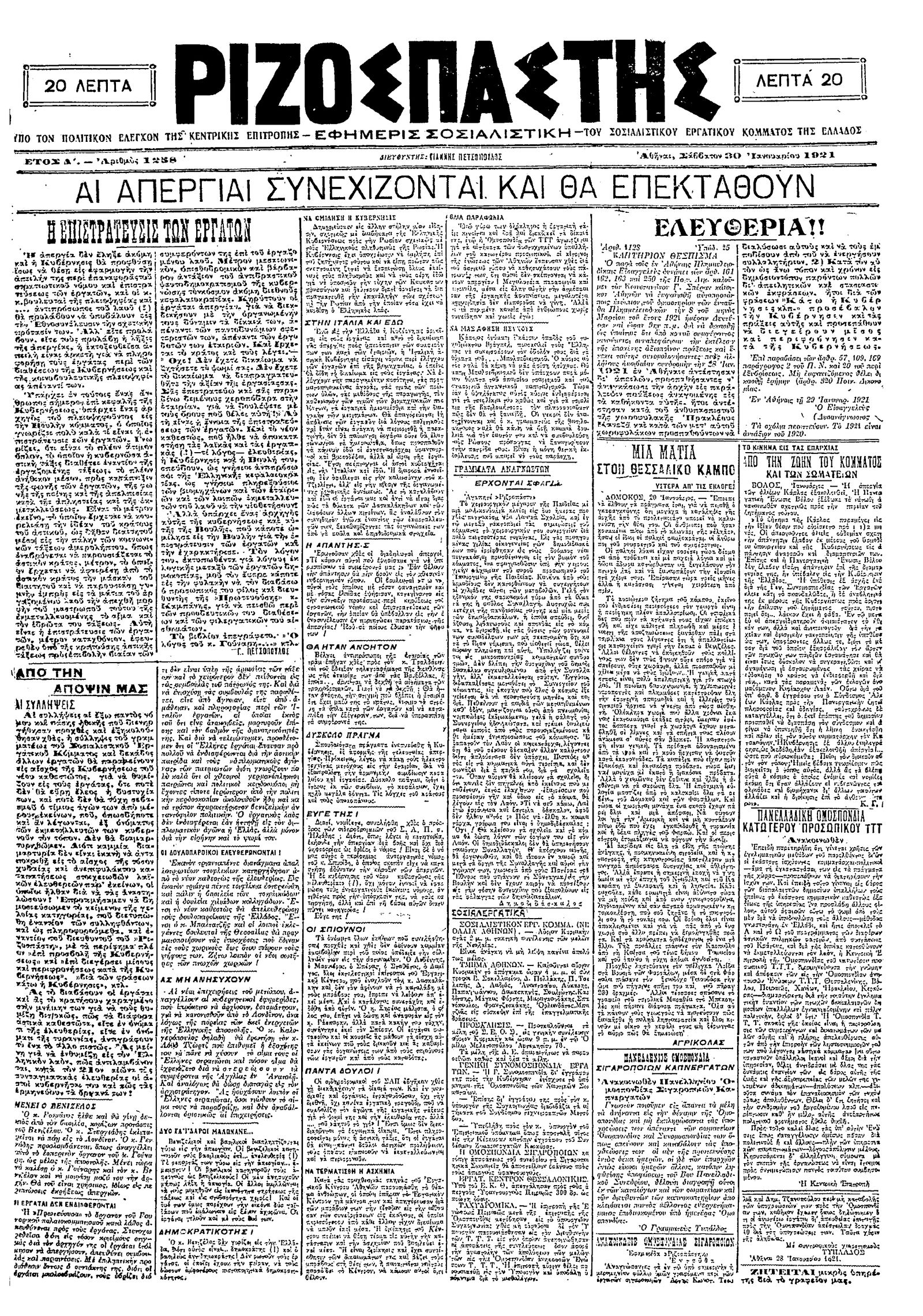 Ριζοσπάστης 30/01/1921