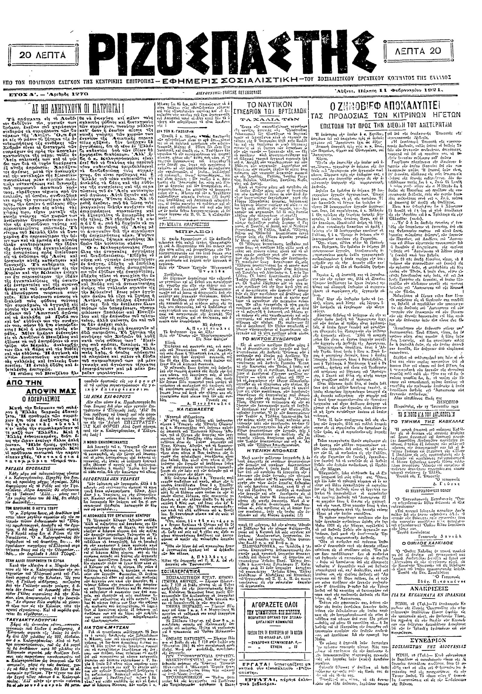 Ριζοσπάστης 11/02/1921