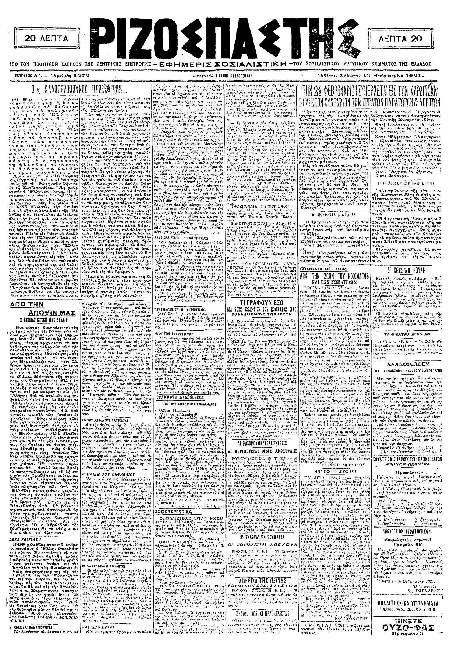 Ριζοσπάστης 13/02/1921