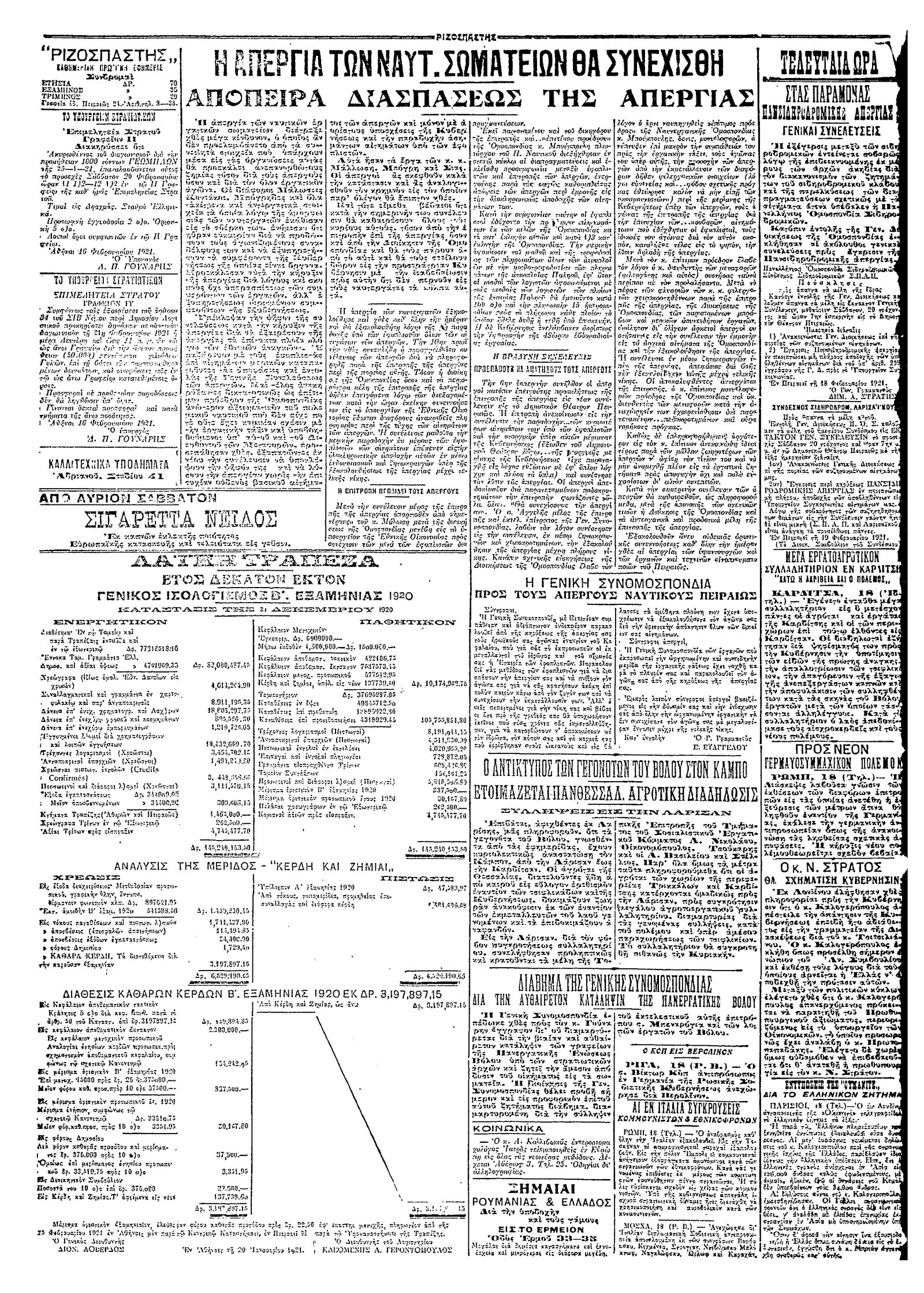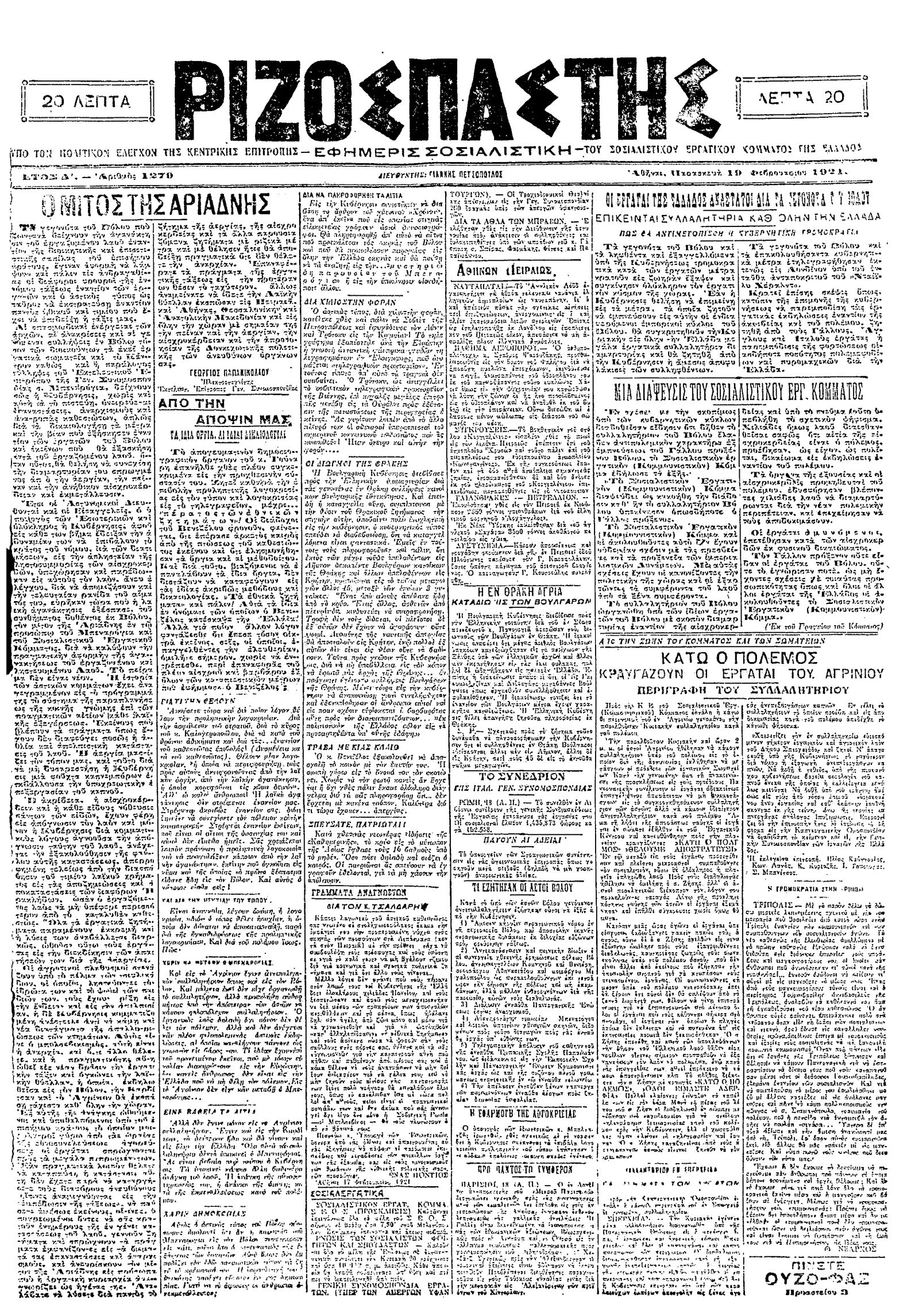 Ριζοσπάστης 19/02/1921