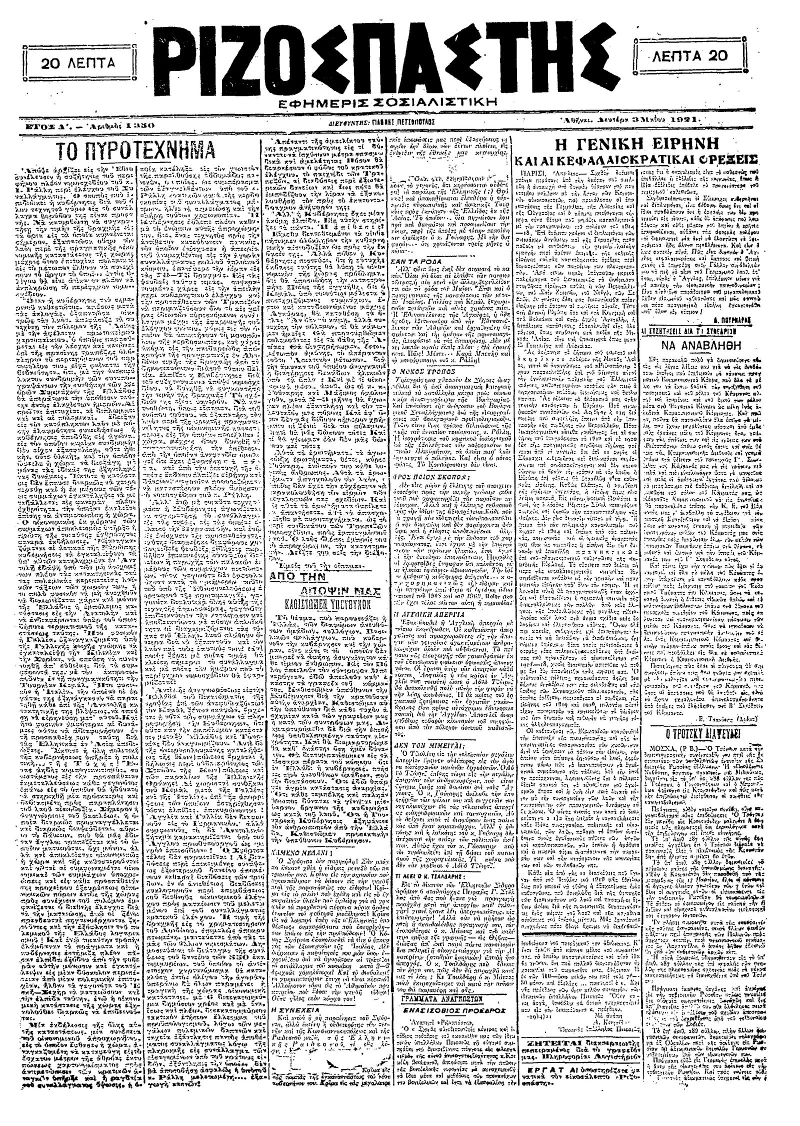 Ριζοσπάστης 03/05/1921