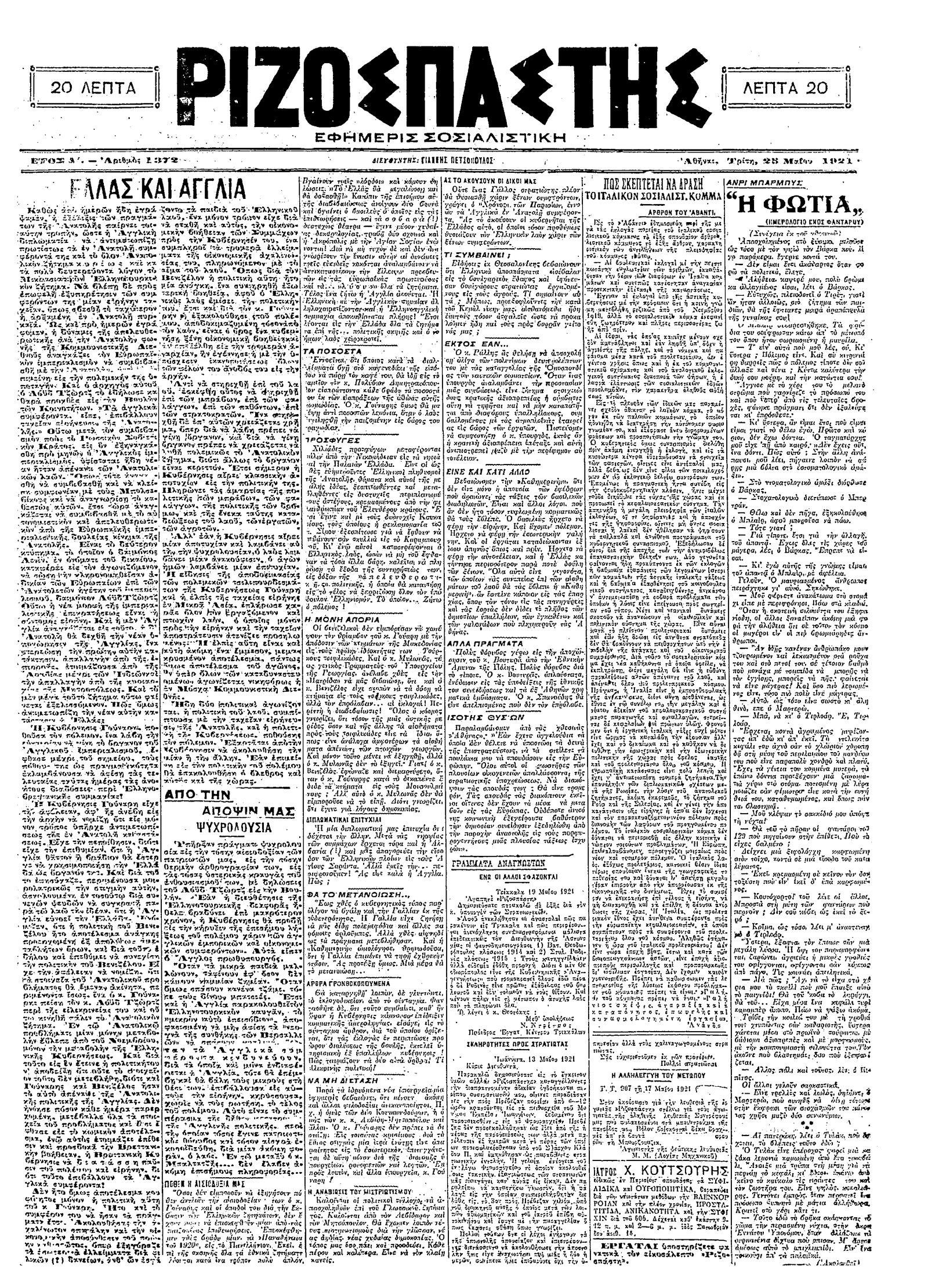 Ριζοσπάστης 25/05/1921