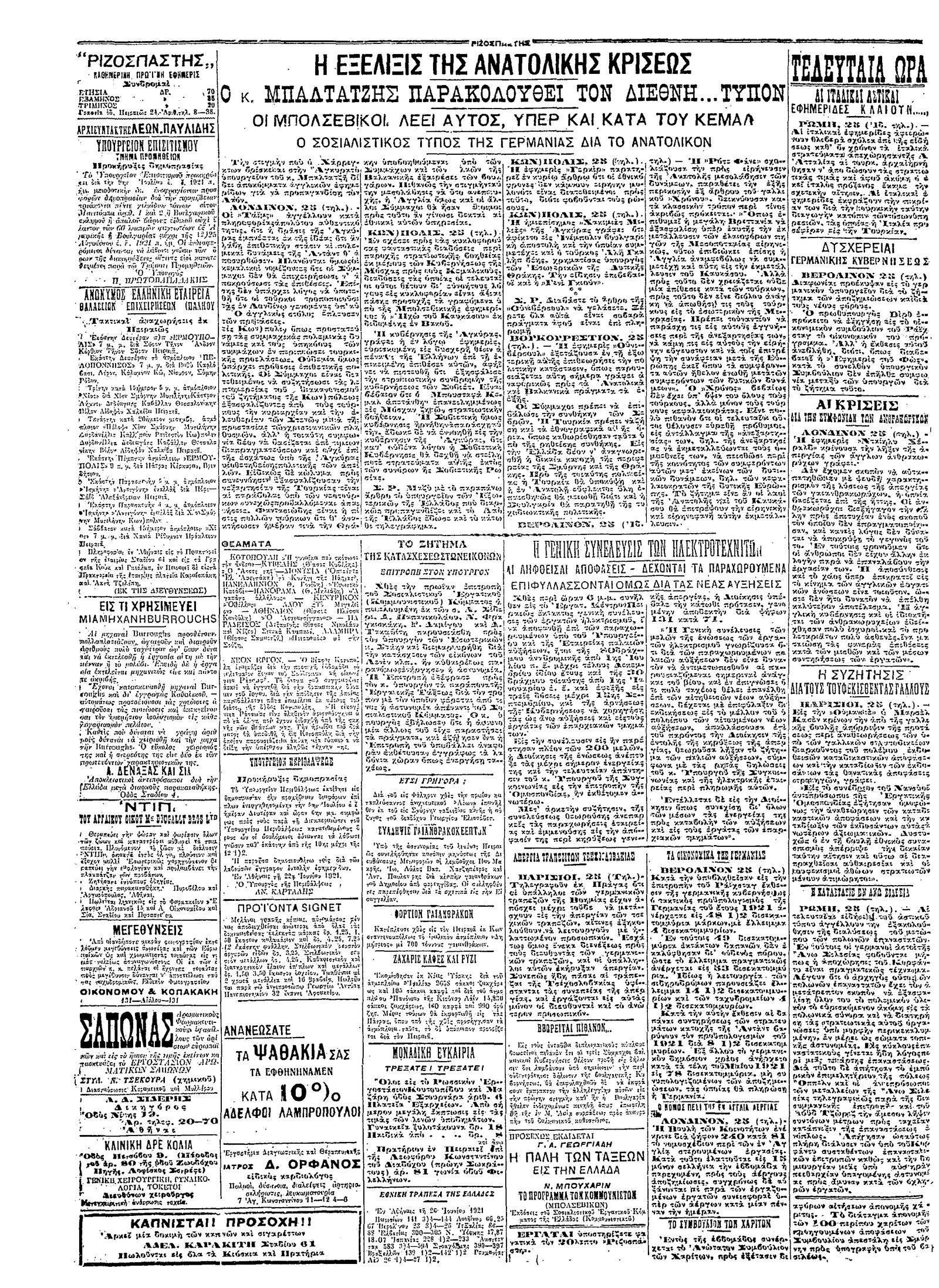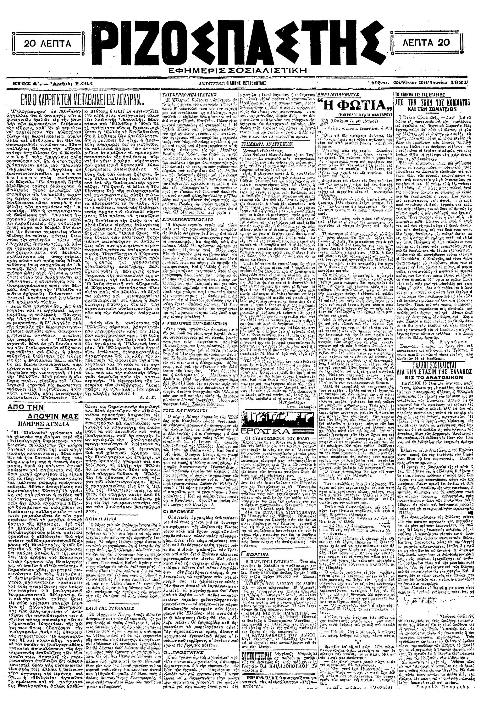 Ριζοσπάστης 26/06/1921