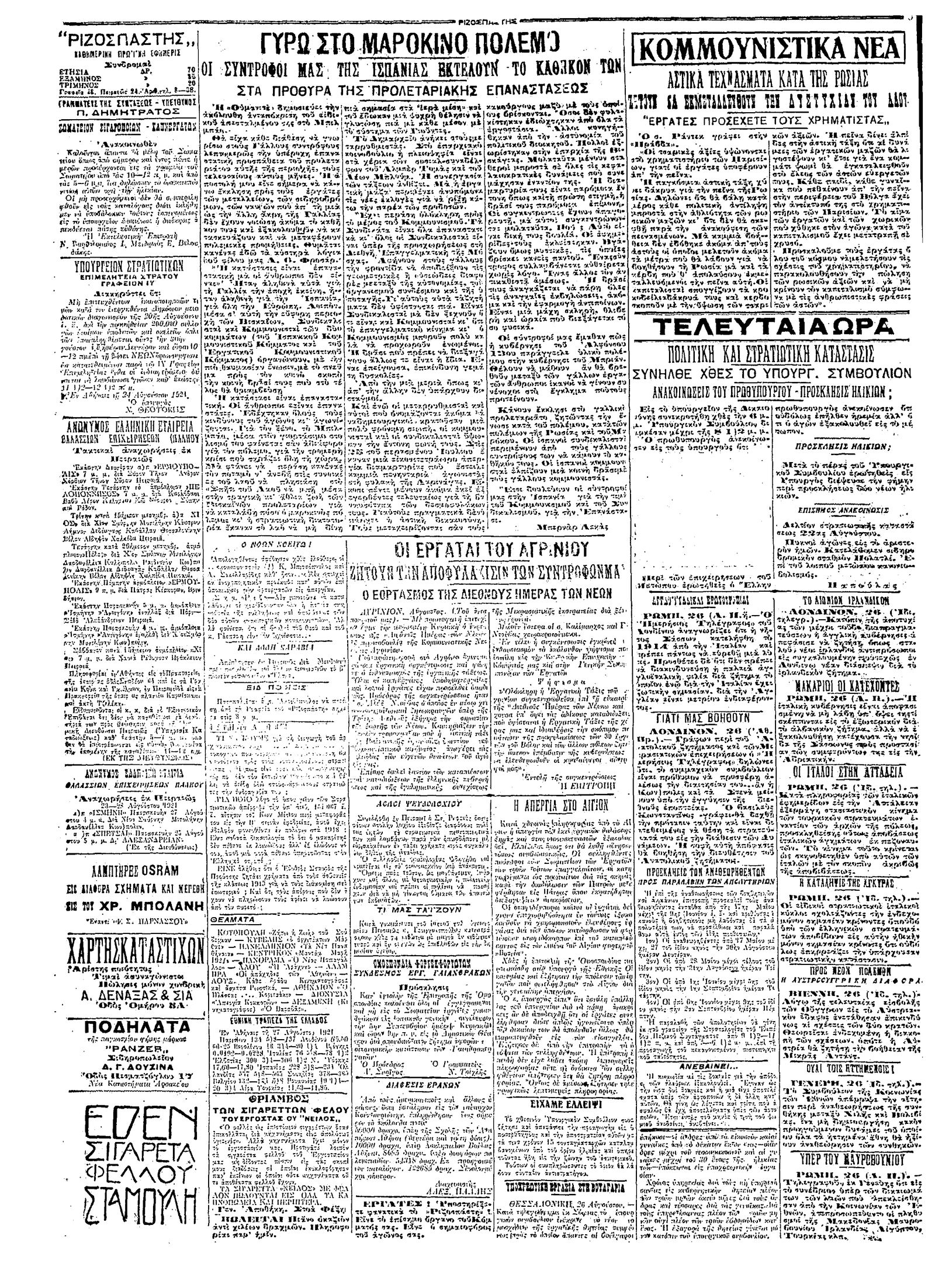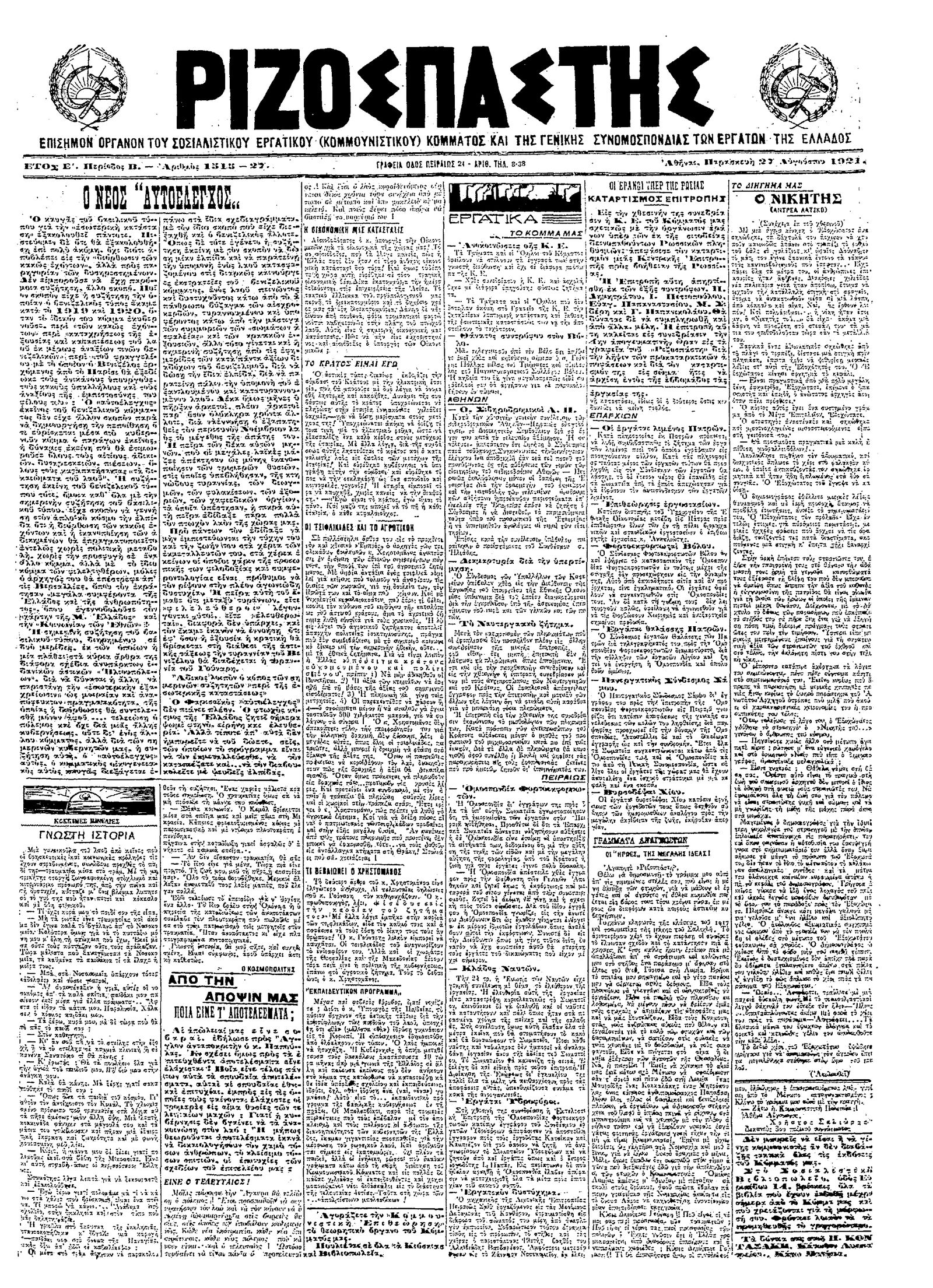 Ριζοσπάστης 27/08/1921