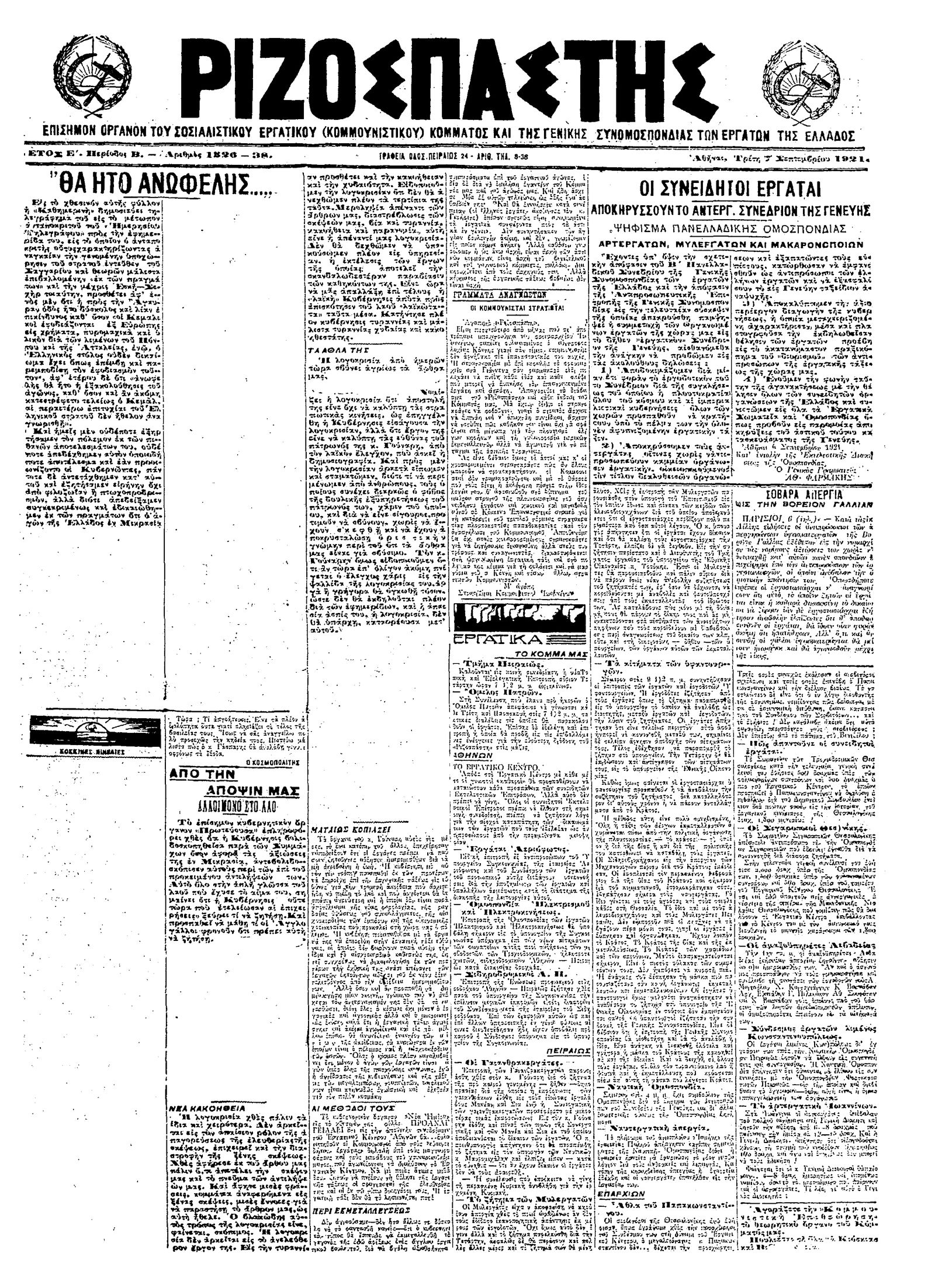 Ριζοσπάστης 07/09/1921