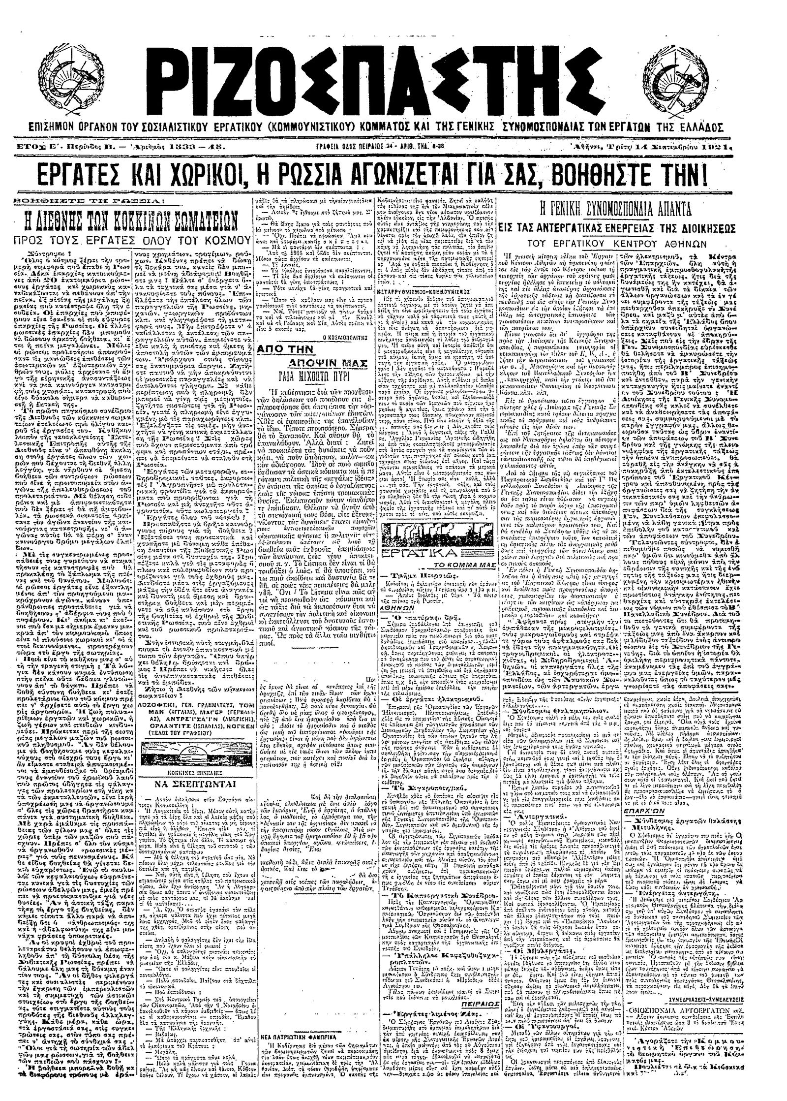 Ριζοσπάστης 14/09/1921