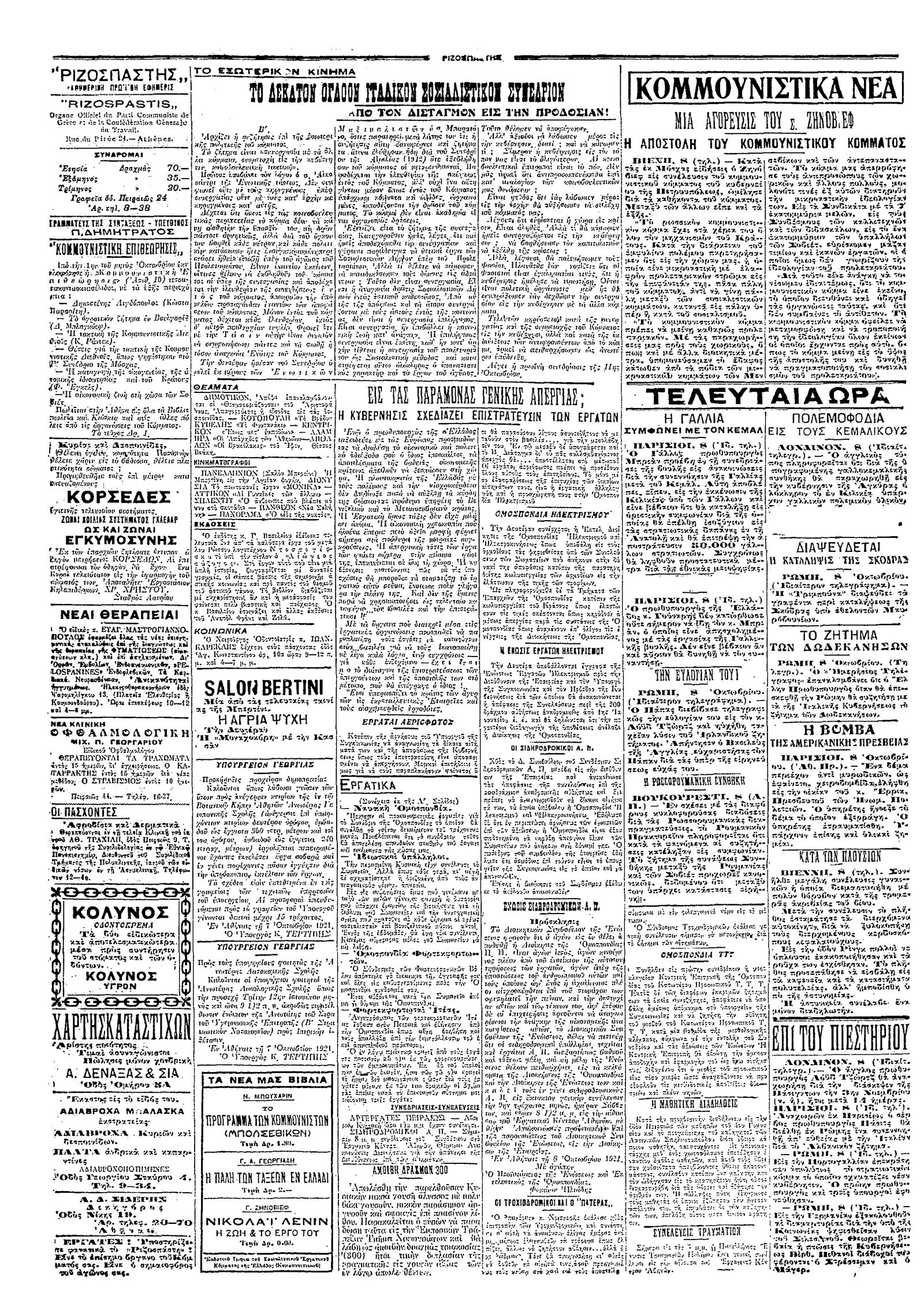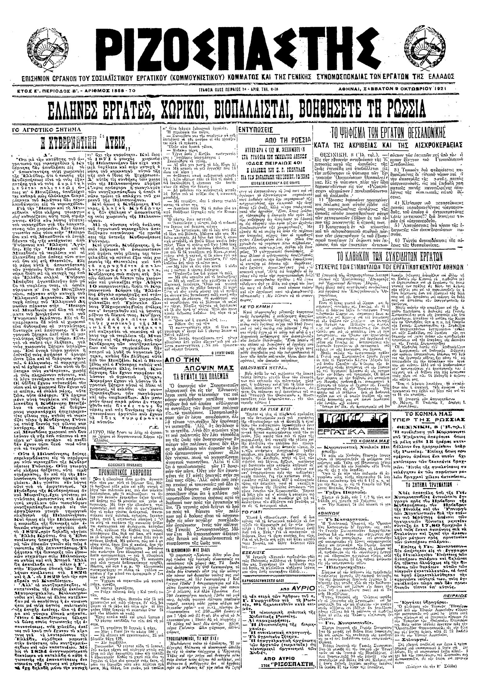 Ριζοσπάστης 09/10/1921