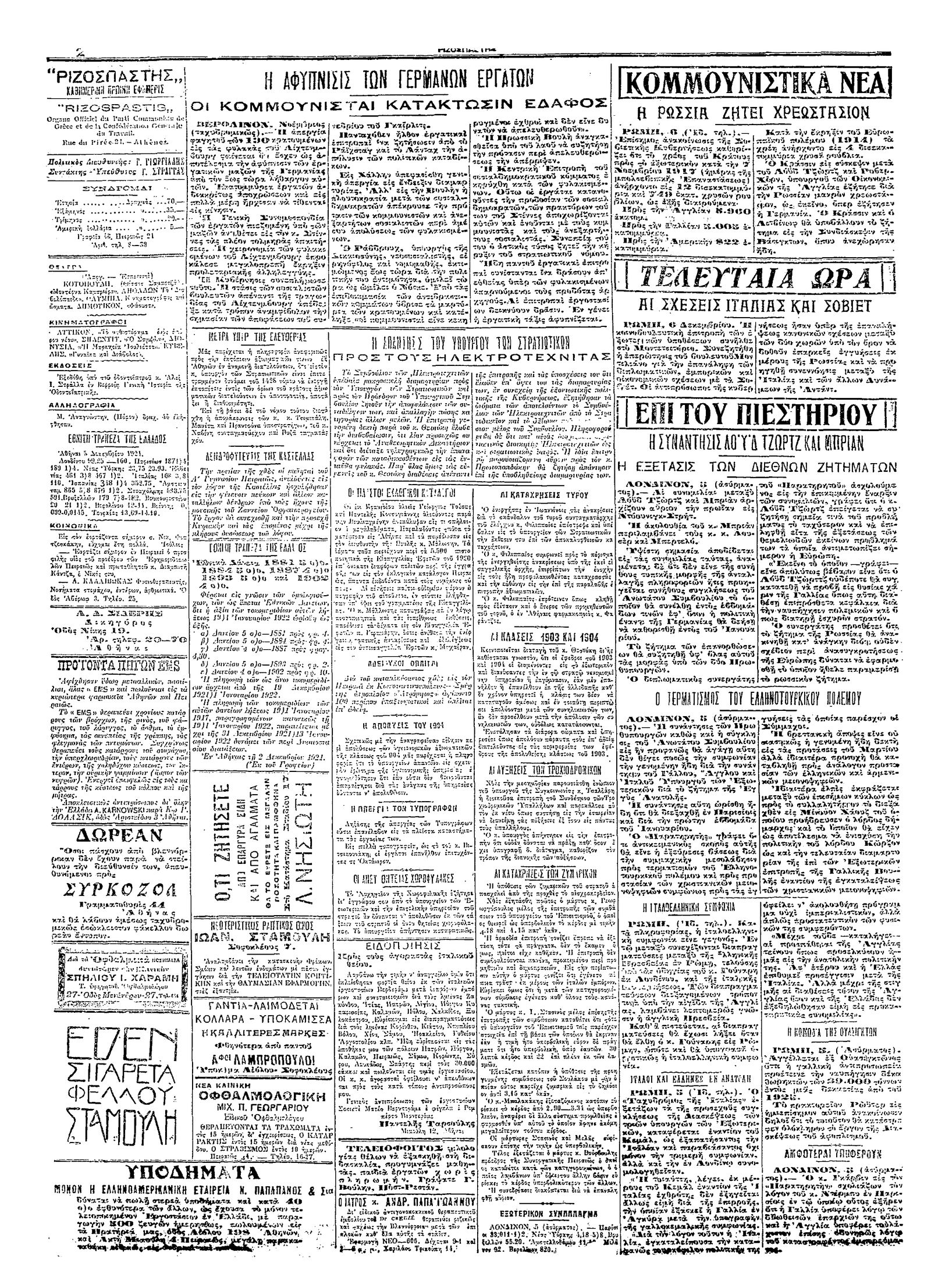 Ριζοσπάστης 06/12/1921