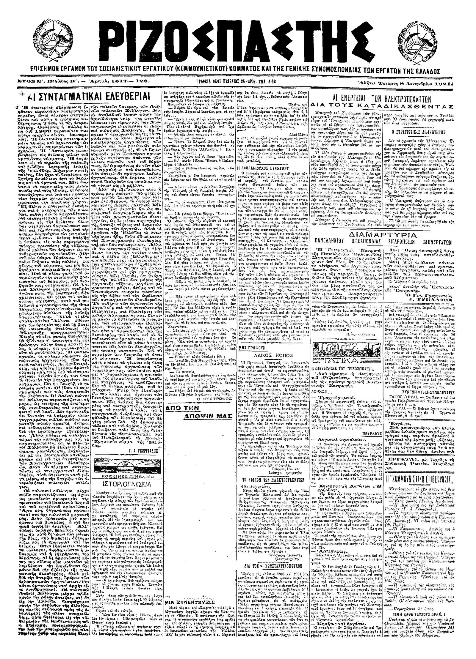Ριζοσπάστης 08/12/1921