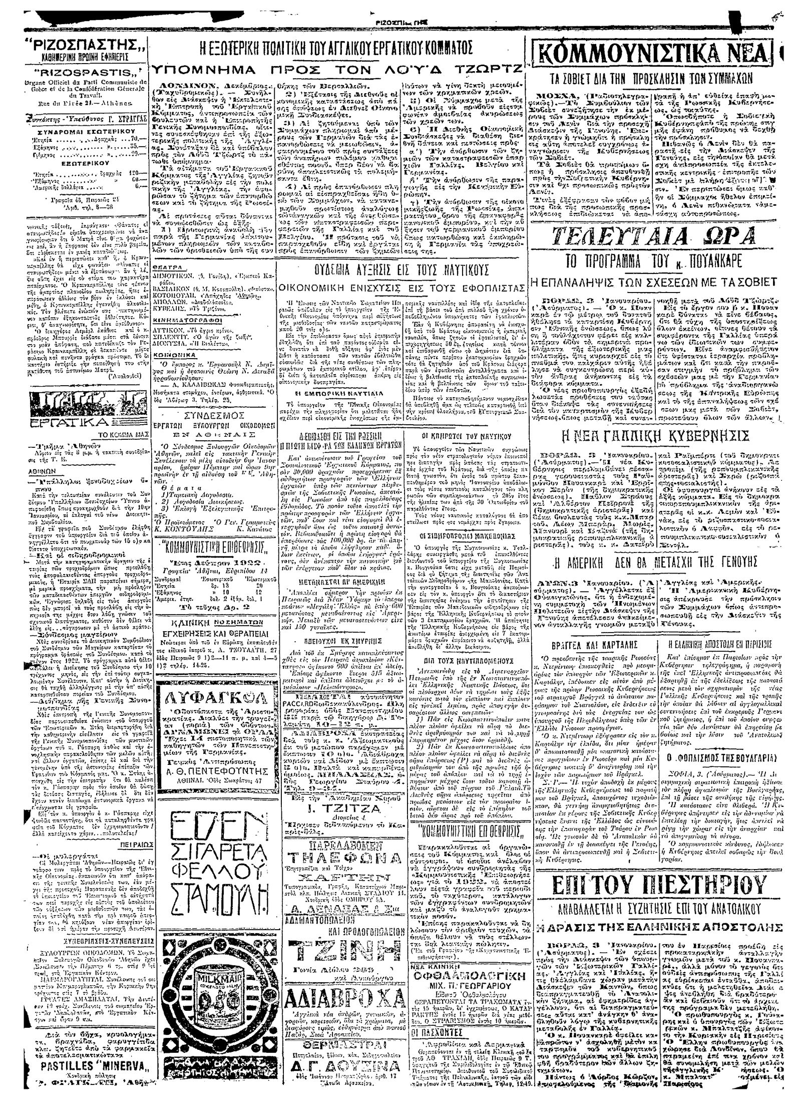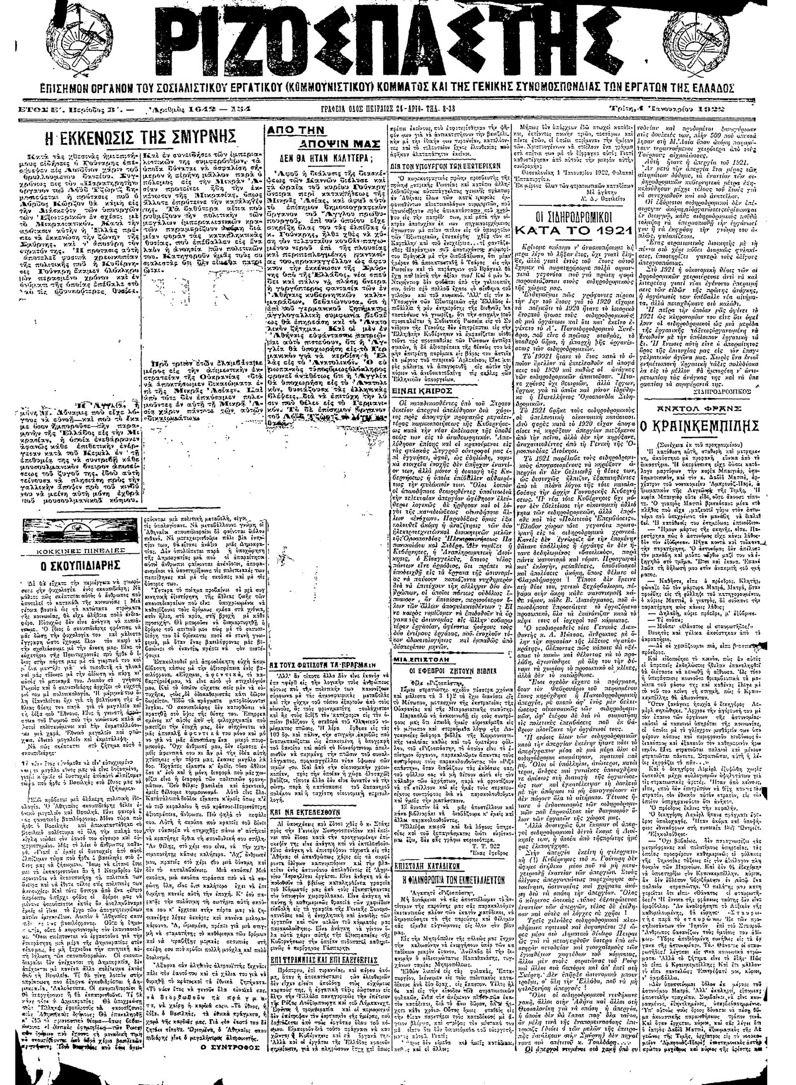 Ριζοσπάστης 04/01/1922
