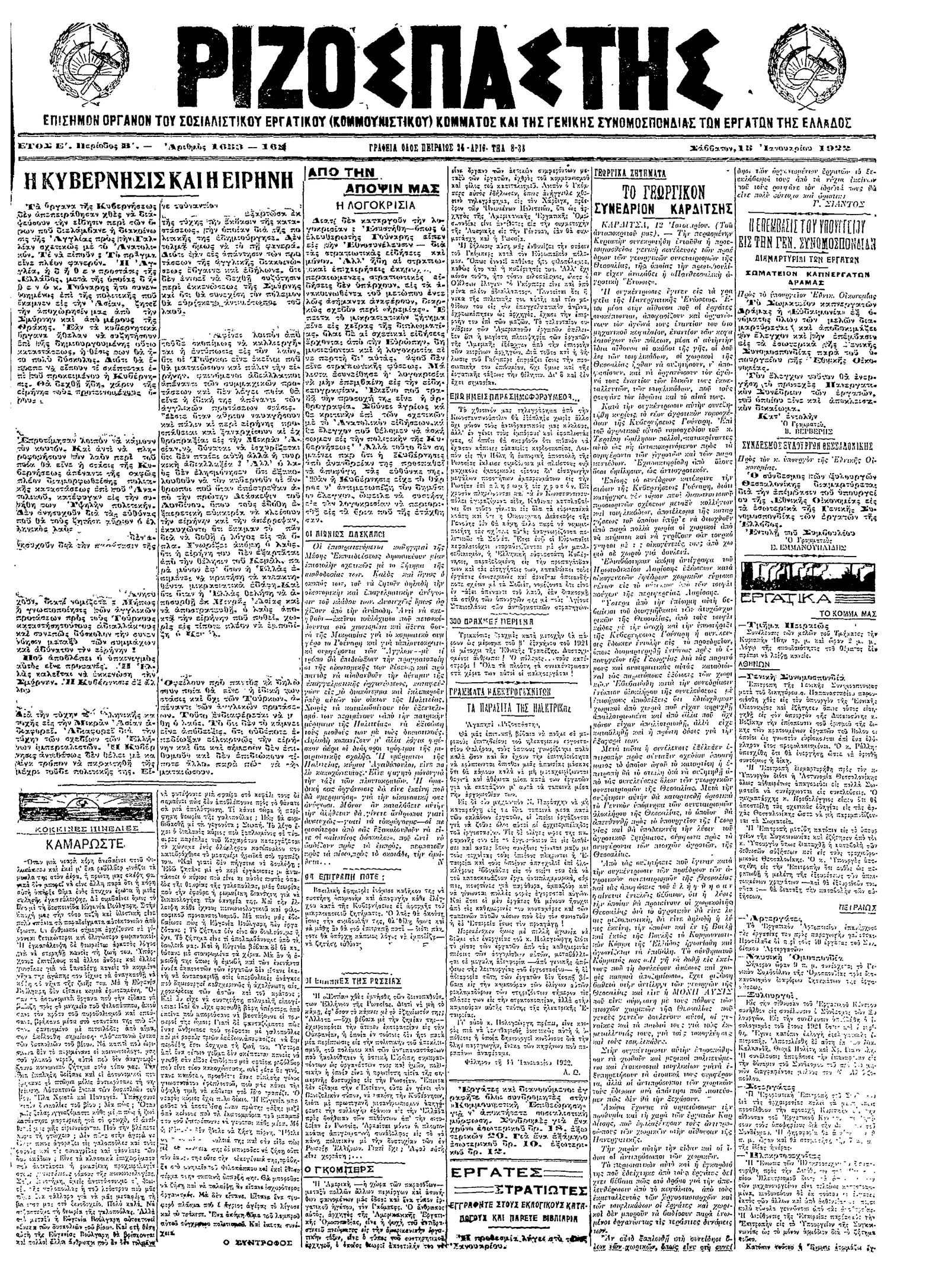 Ριζοσπάστης 15/01/1922