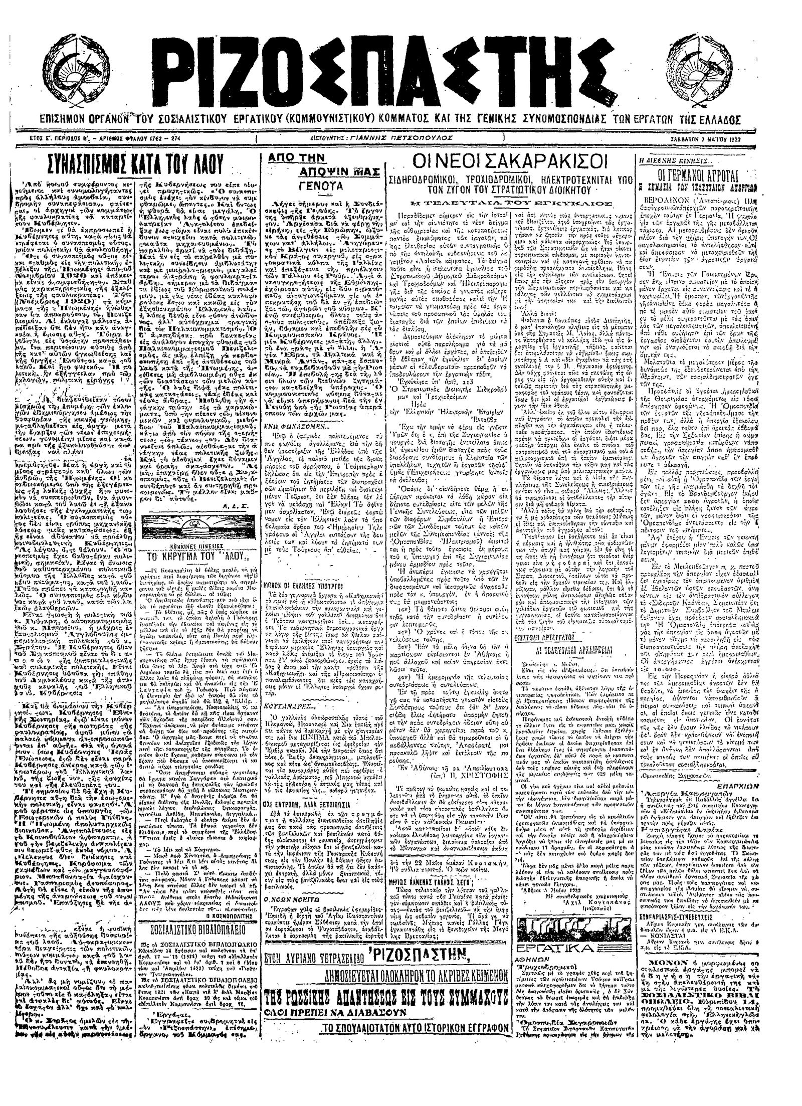 Ριζοσπάστης 07/05/1922