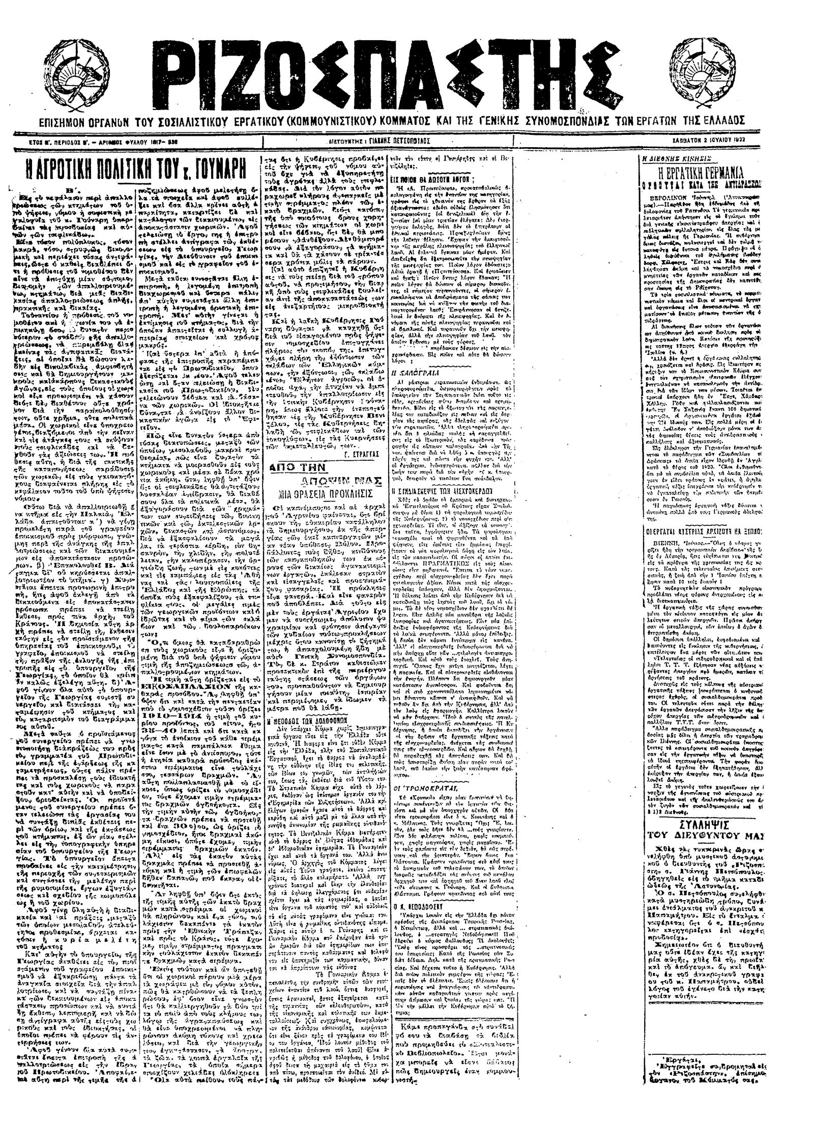 Ριζοσπάστης 02/07/1922
