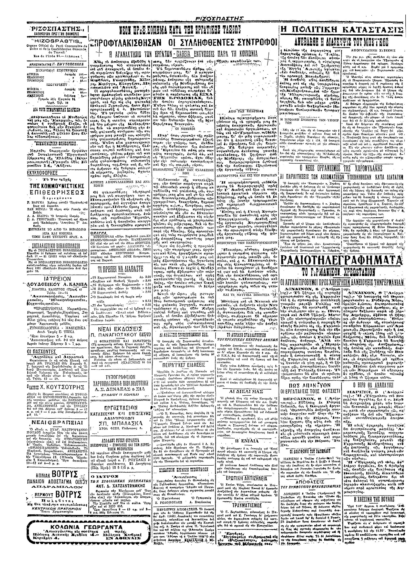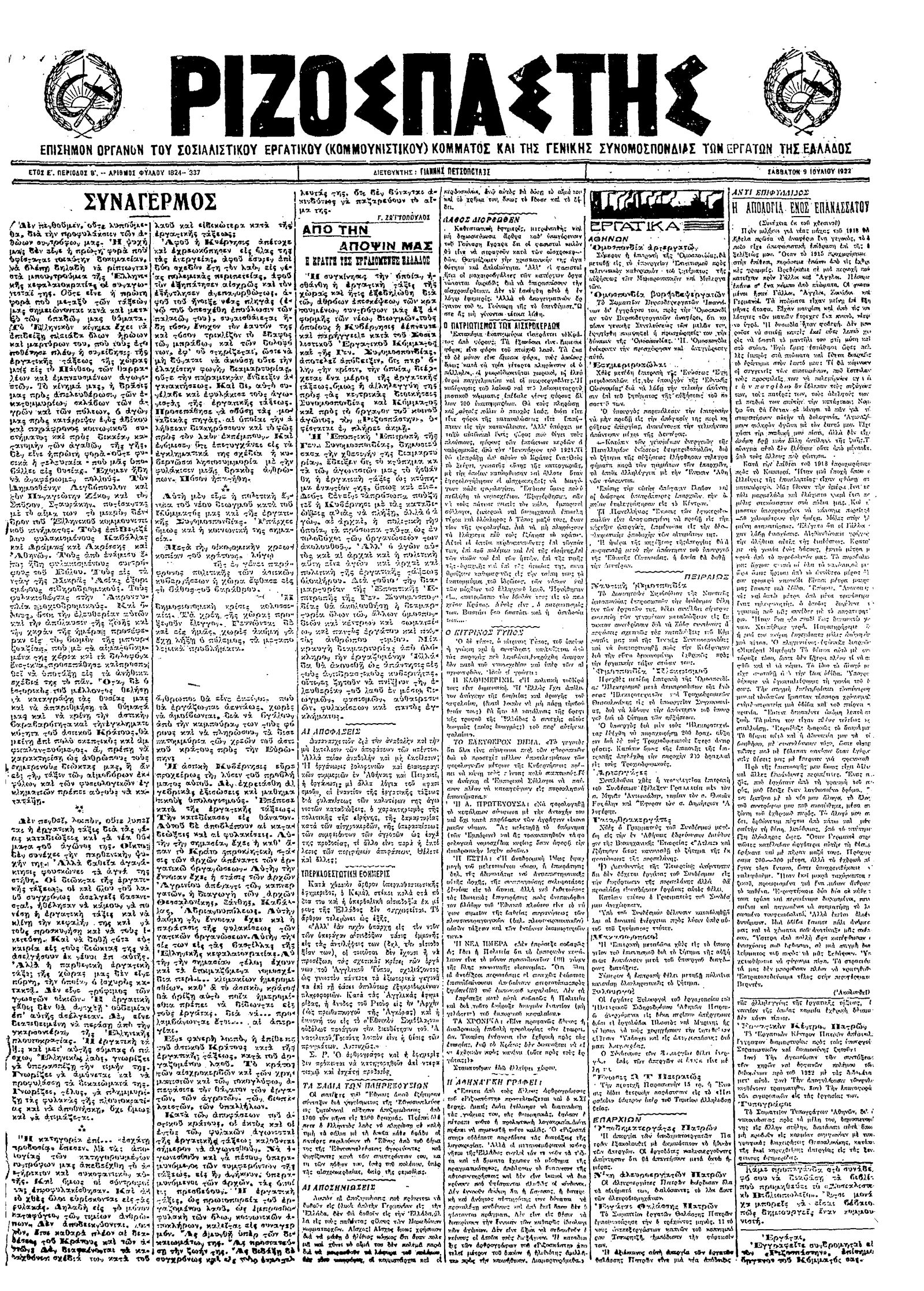Ριζοσπάστης 09/07/1922