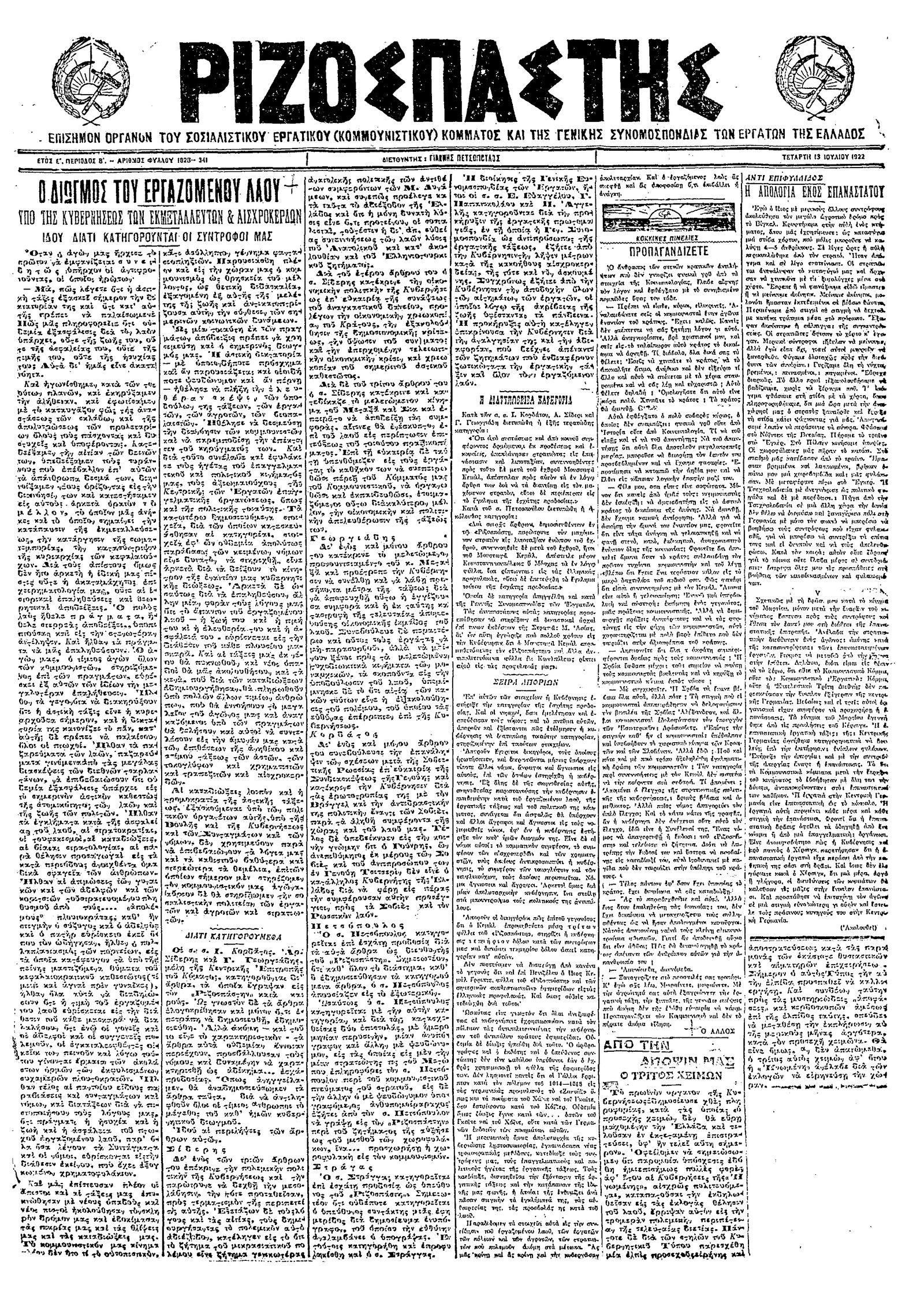 Ριζοσπάστης 13/07/1922