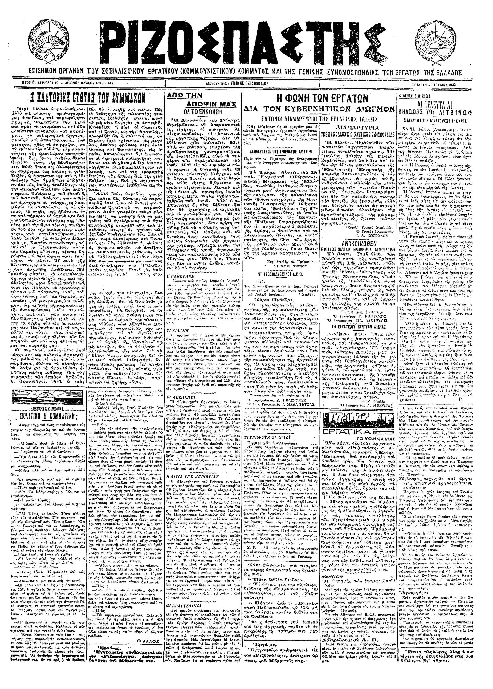 Ριζοσπάστης 20/07/1922
