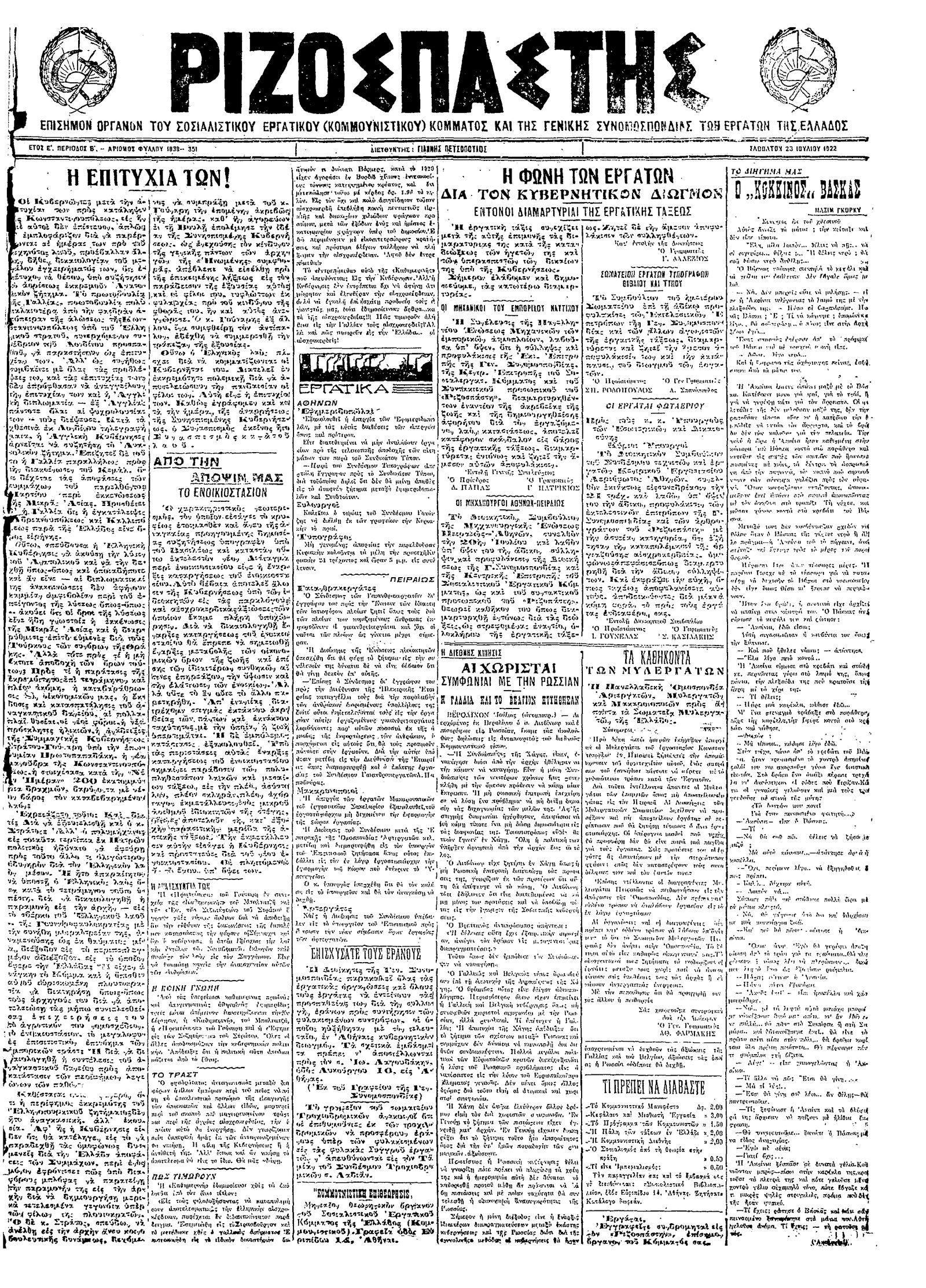 Ριζοσπάστης 23/07/1922