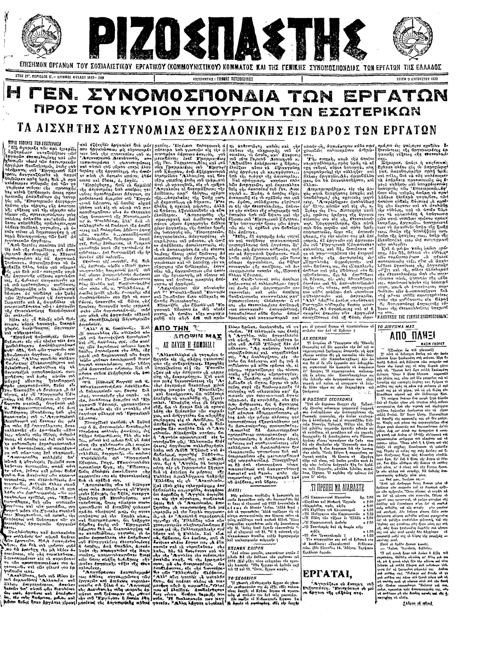Ριζοσπάστης 09/08/1922