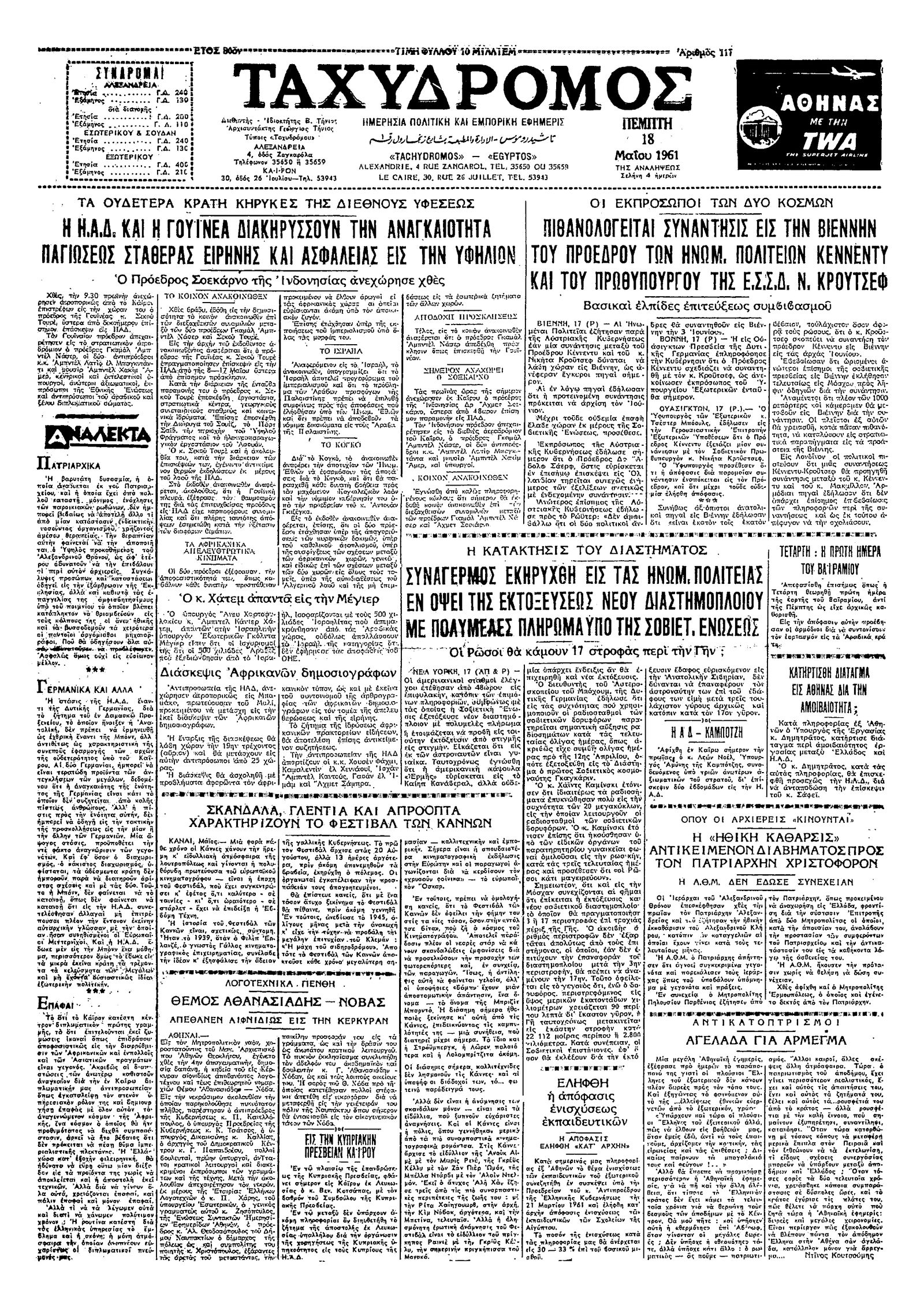 Ταχυδρόμος 18/05/1961