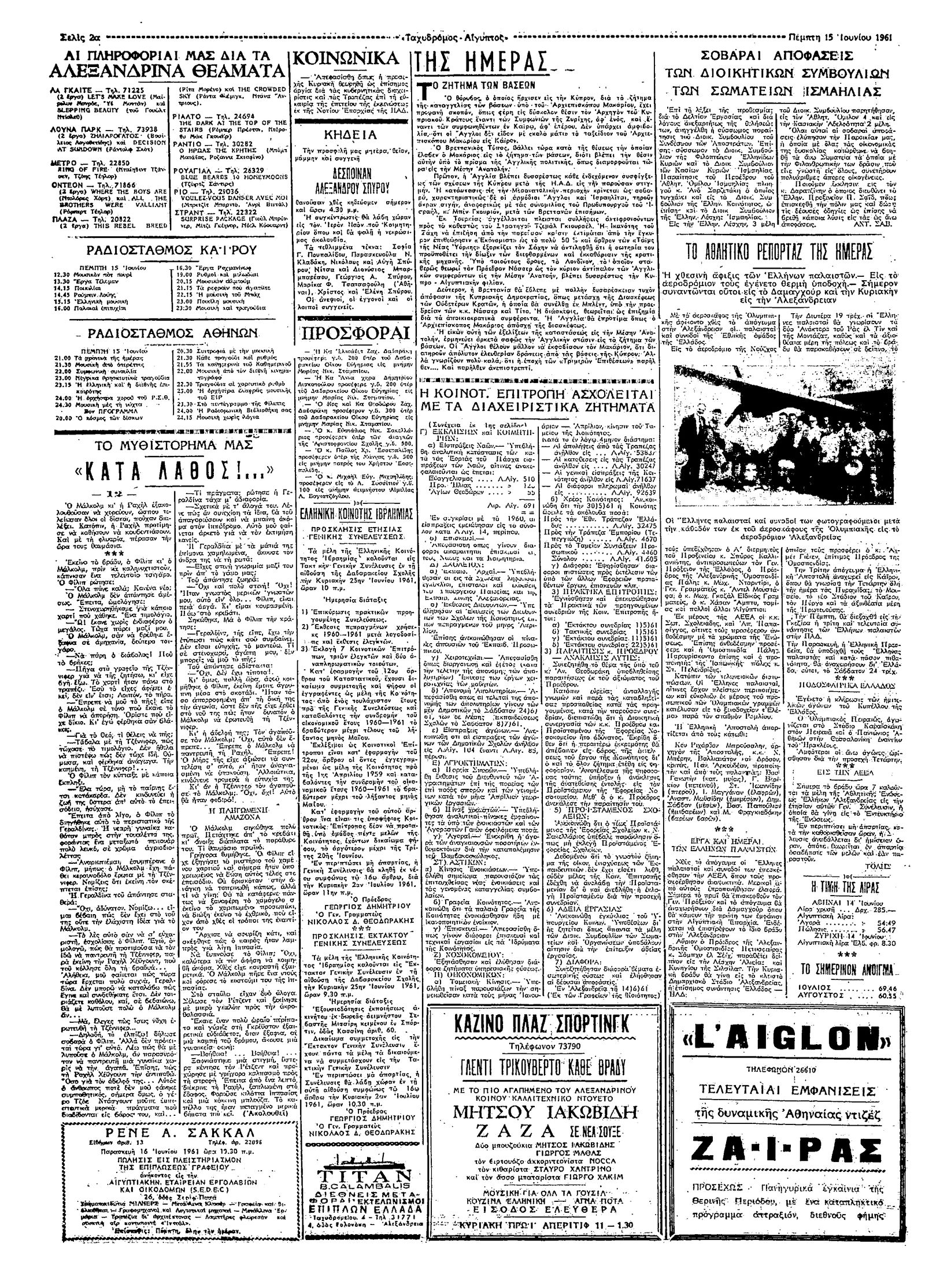 Ταχυδρόμος 15/06/1961
