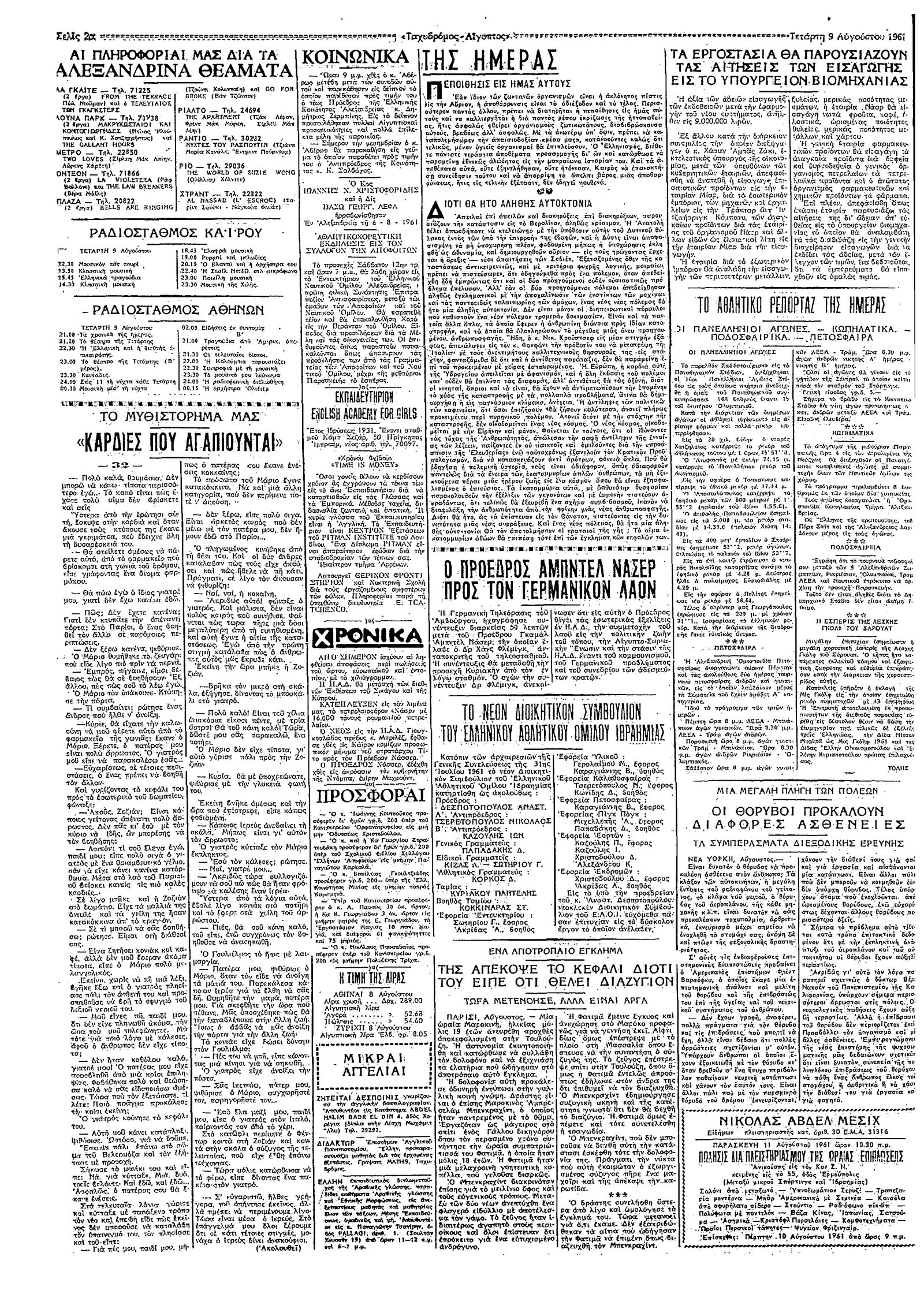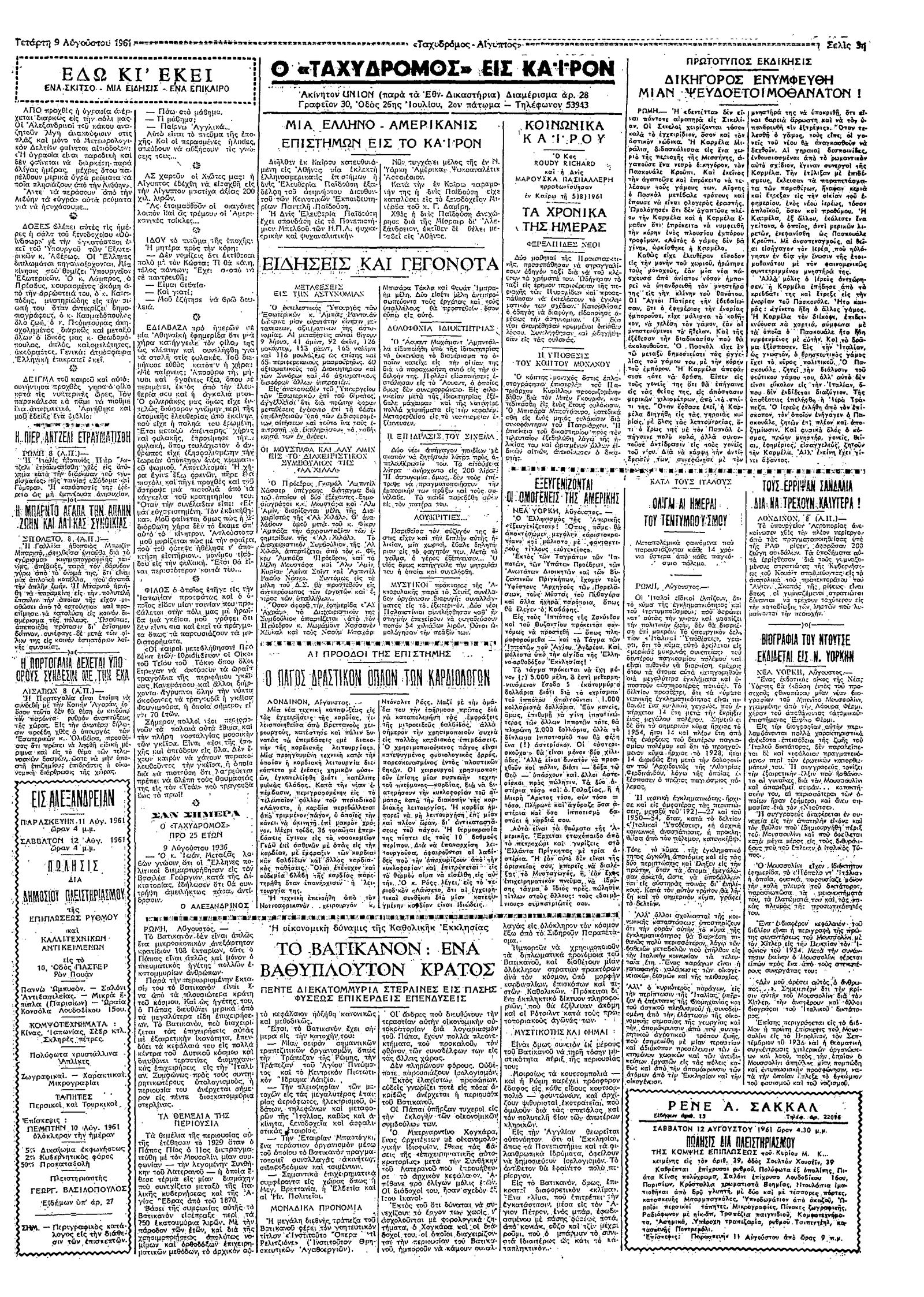Ταχυδρόμος 09/08/1961