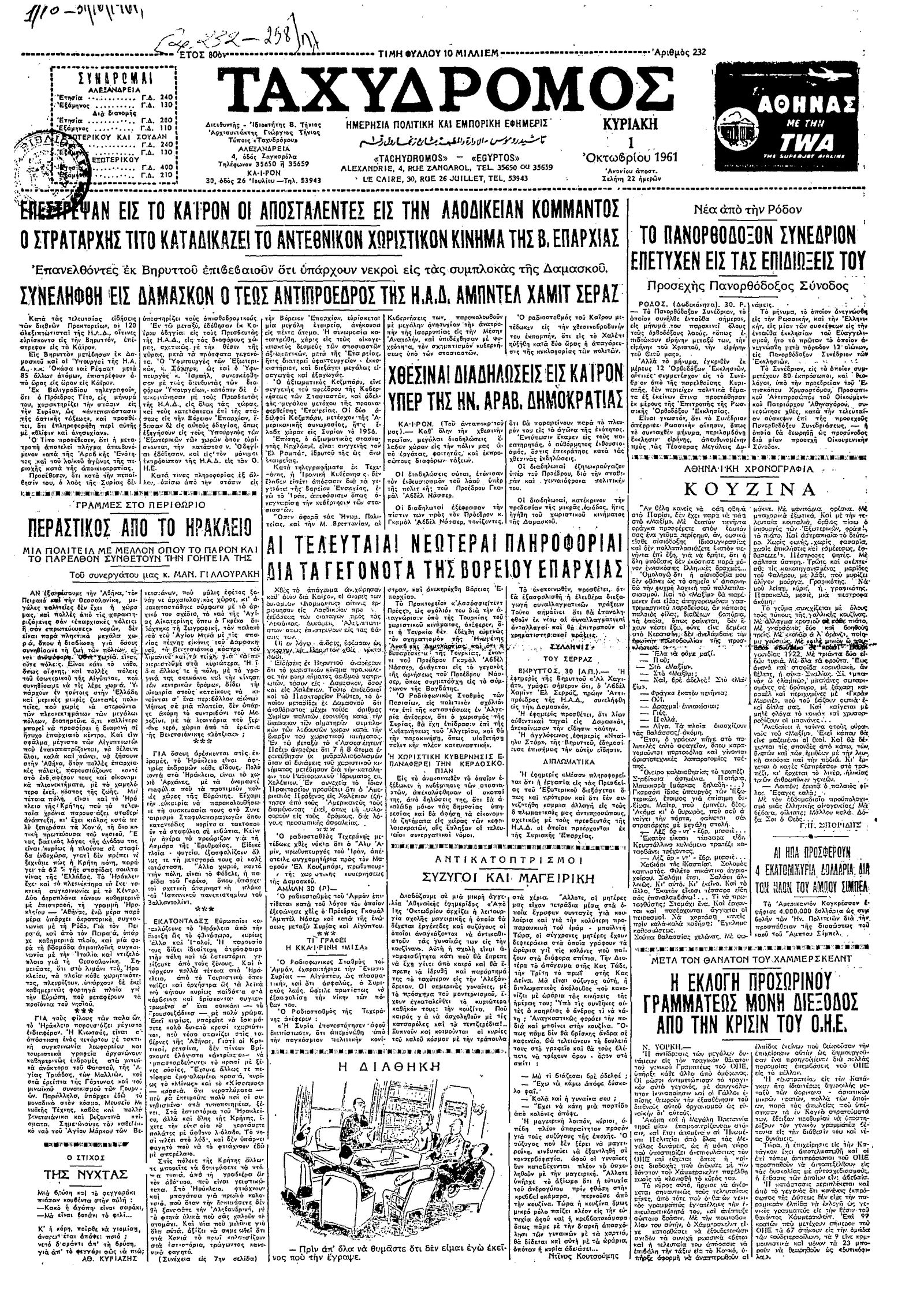Ταχυδρόμος 01/10/1961