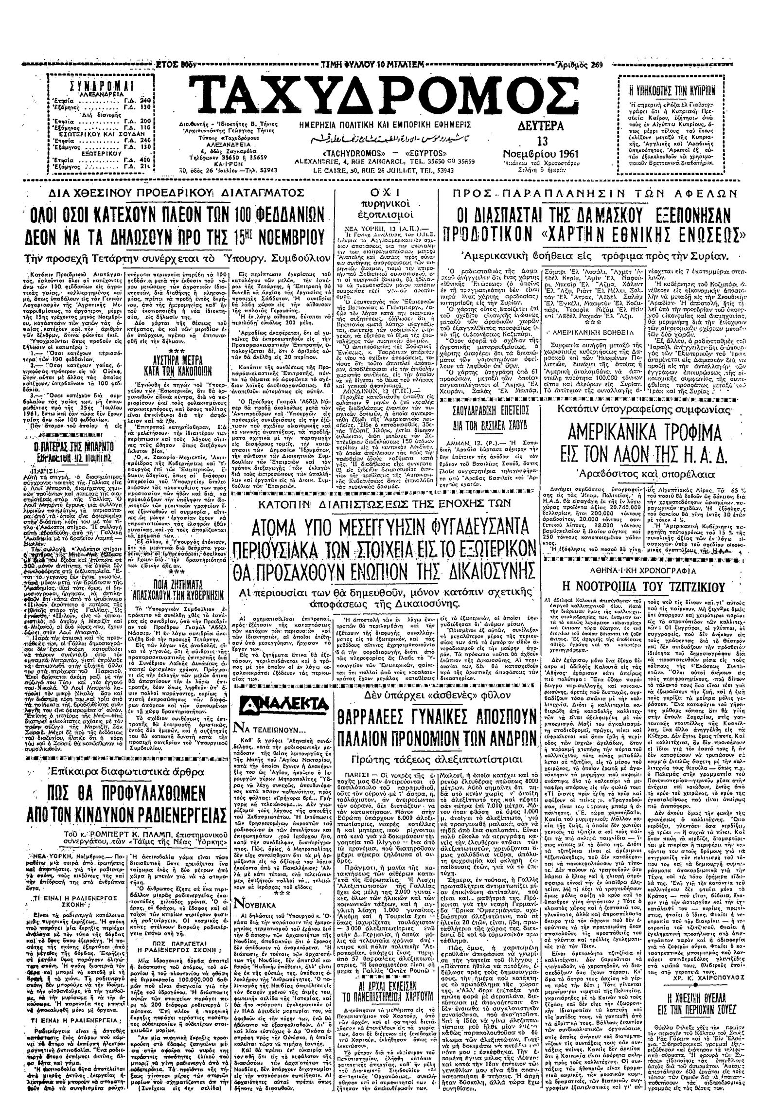 Ταχυδρόμος 13/11/1961