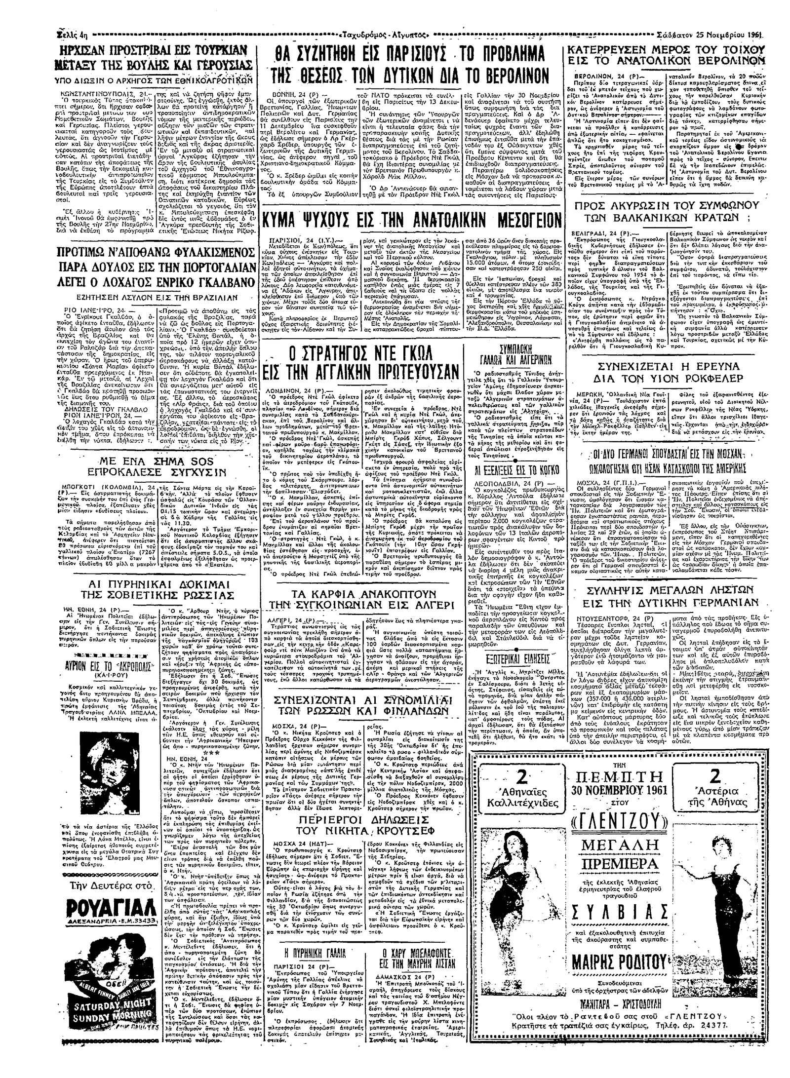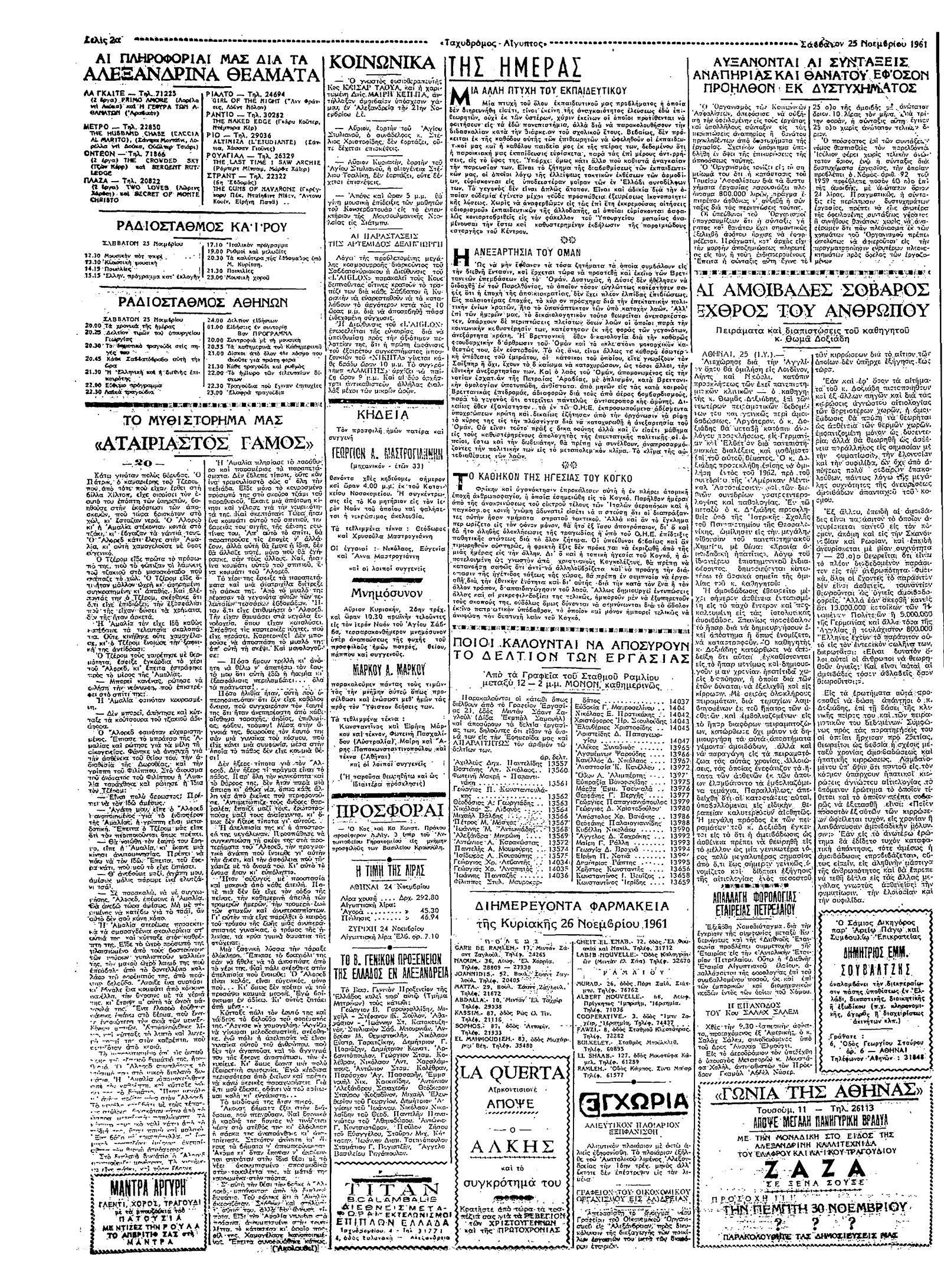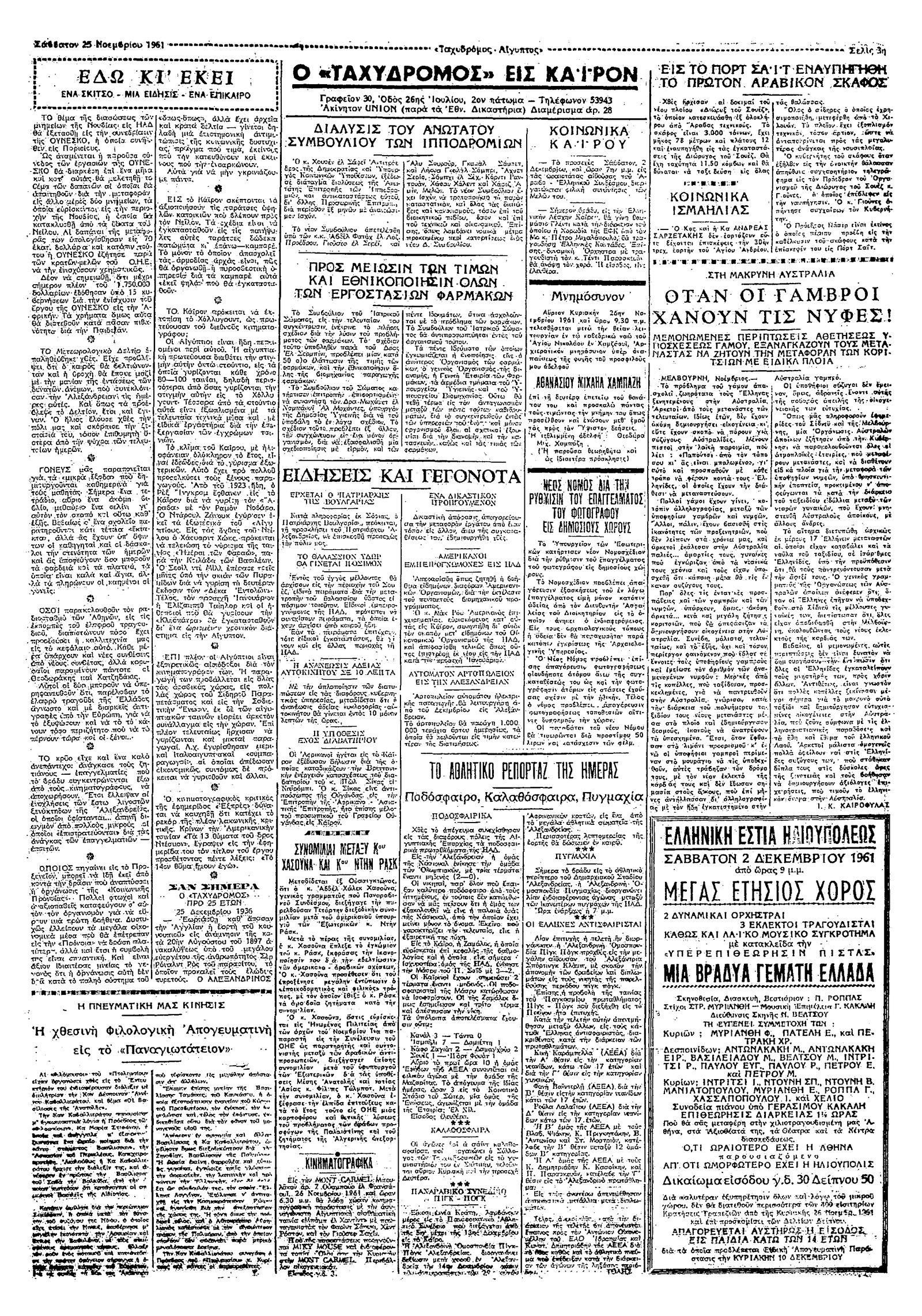 Ταχυδρόμος 25/11/1961