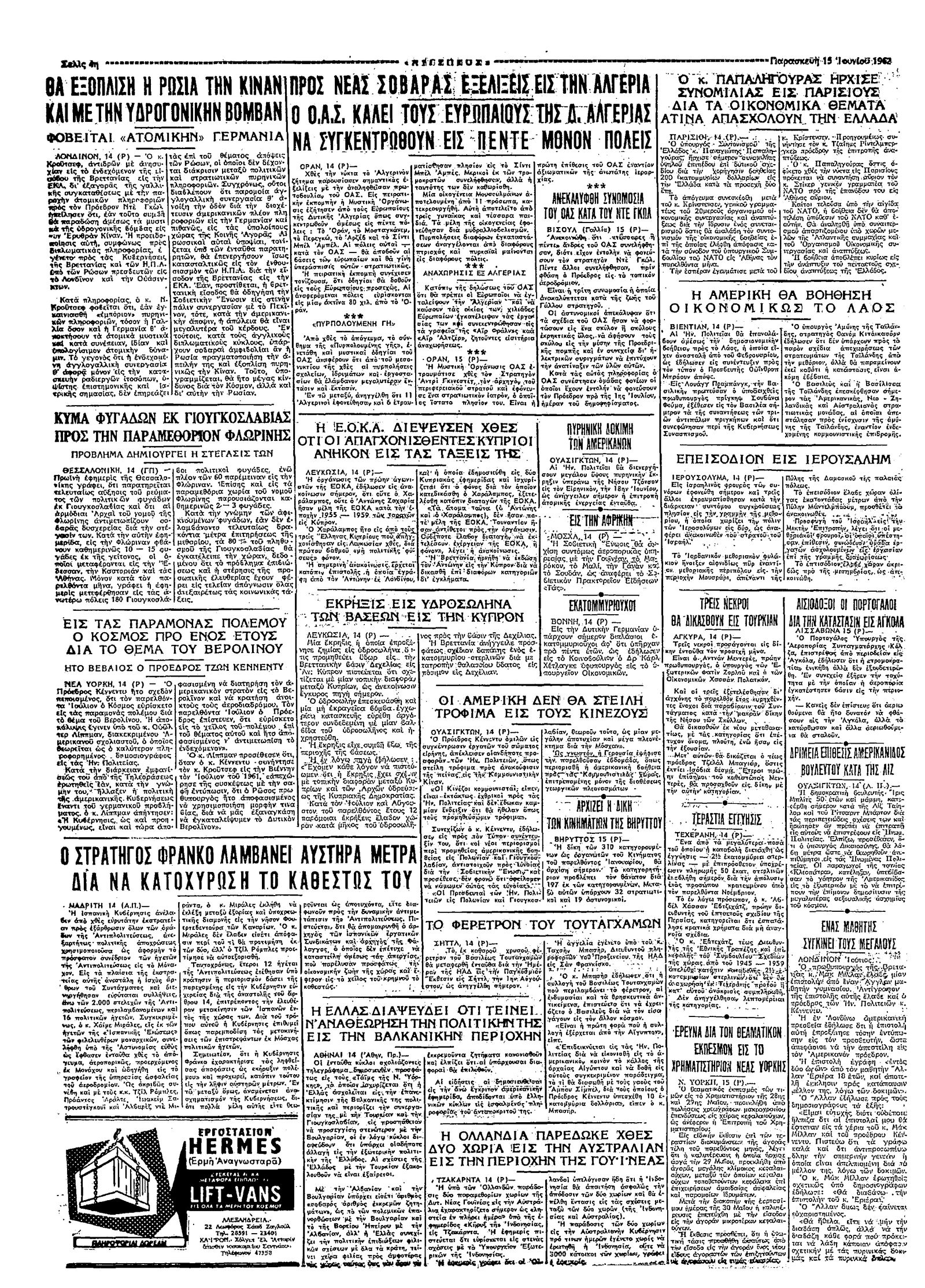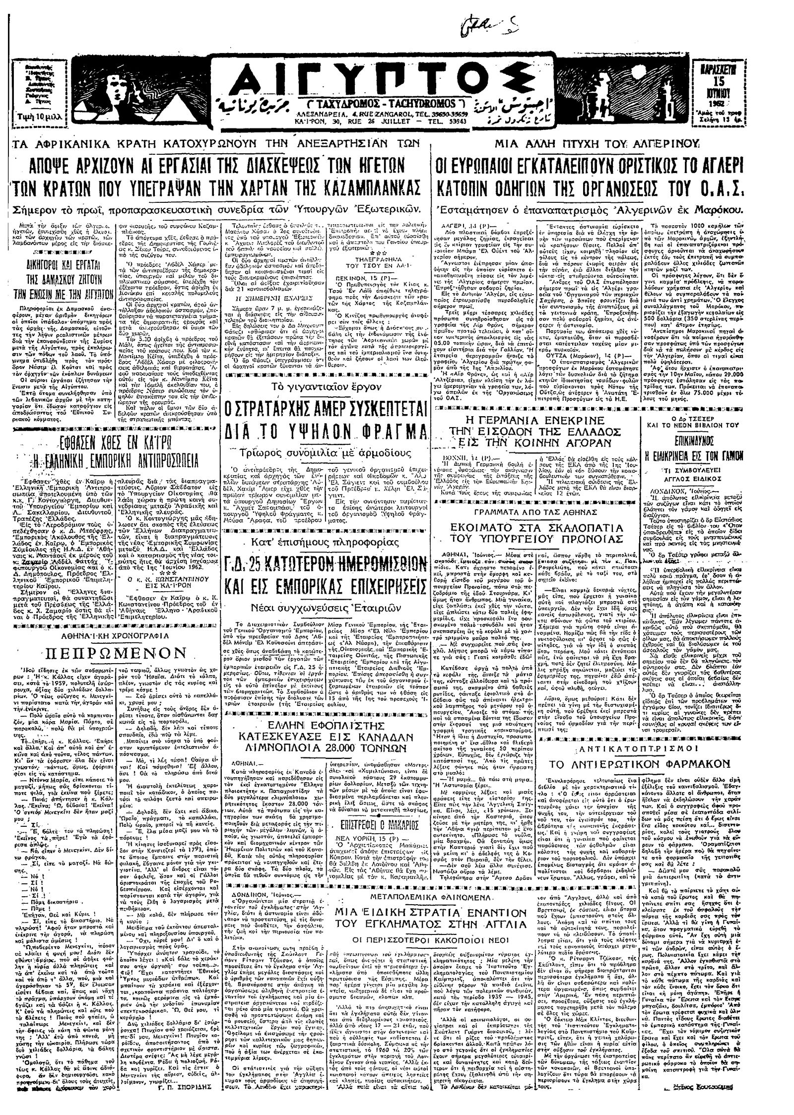 Ταχυδρόμος 15/06/1962