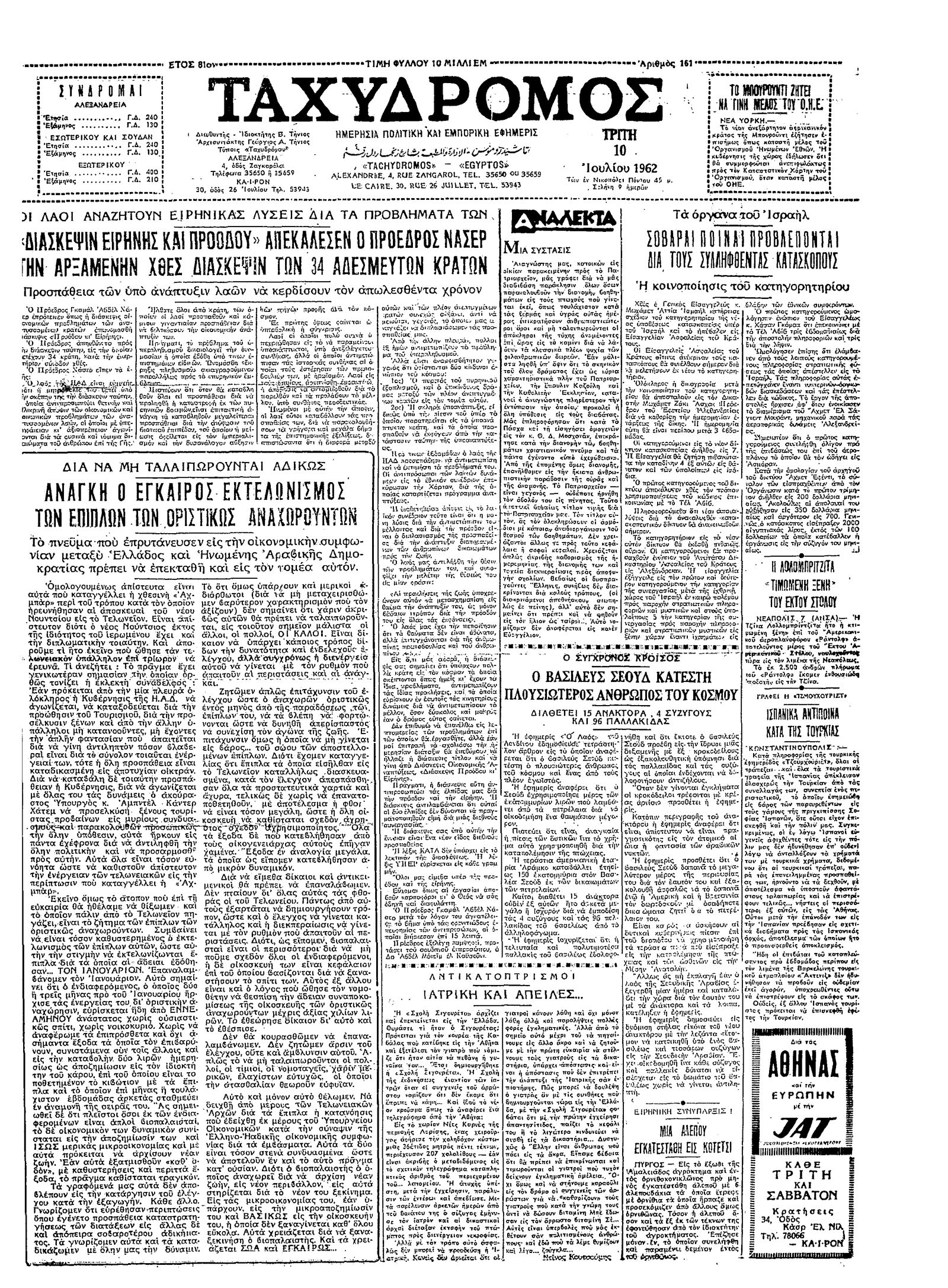 Ταχυδρόμος 10/07/1962