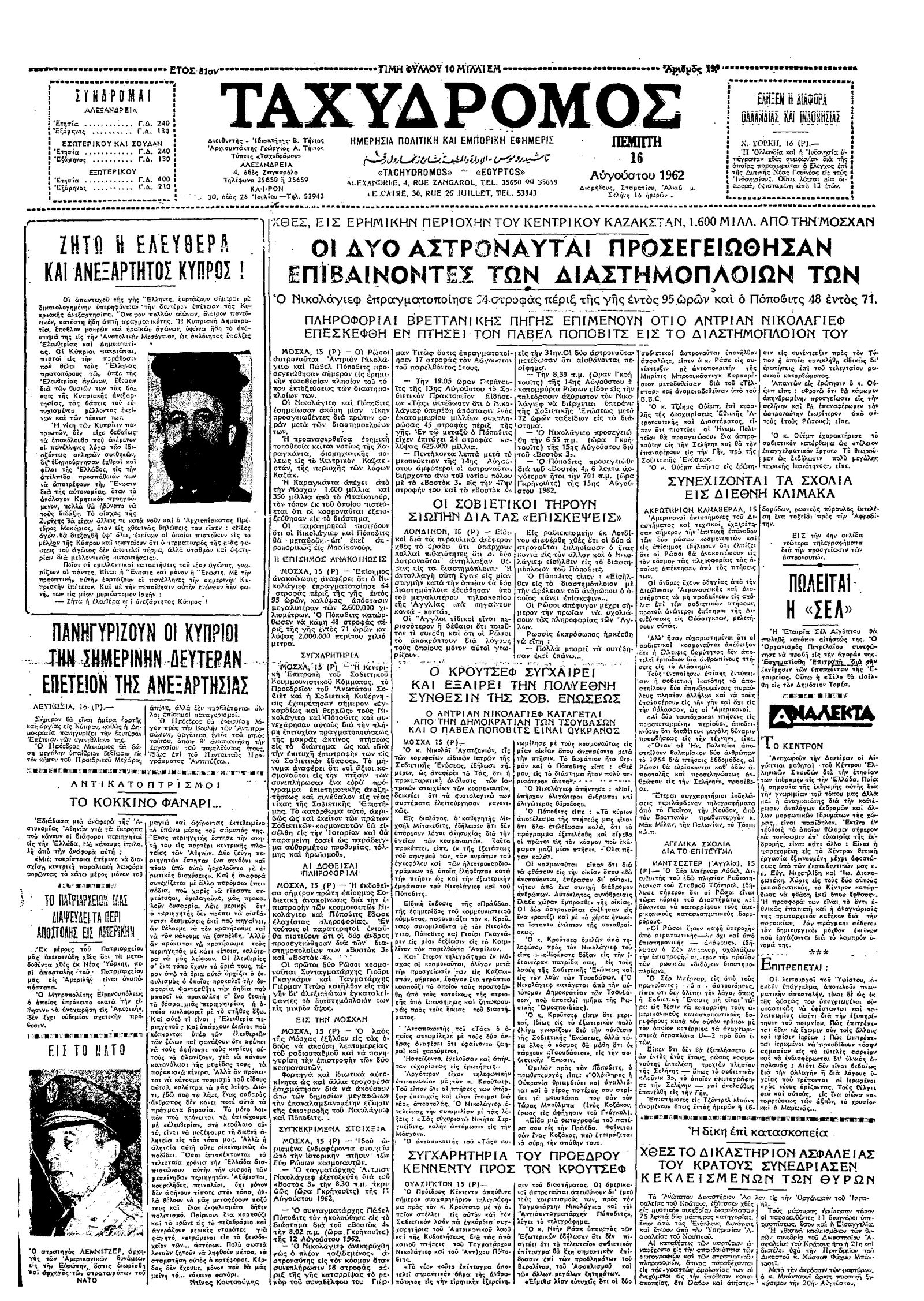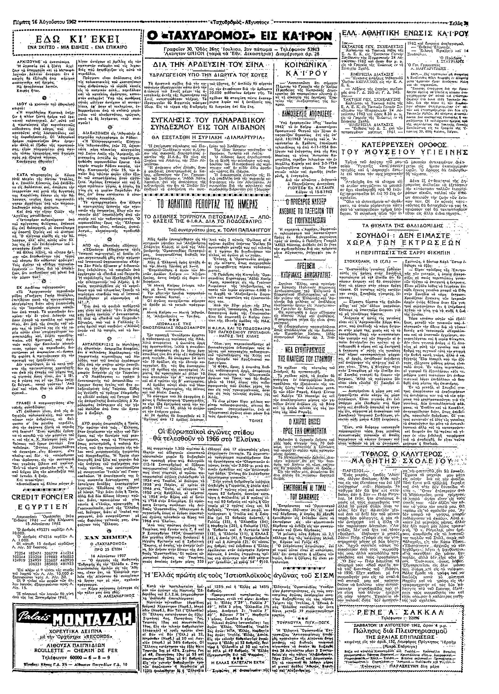 Ταχυδρόμος 16/08/1962