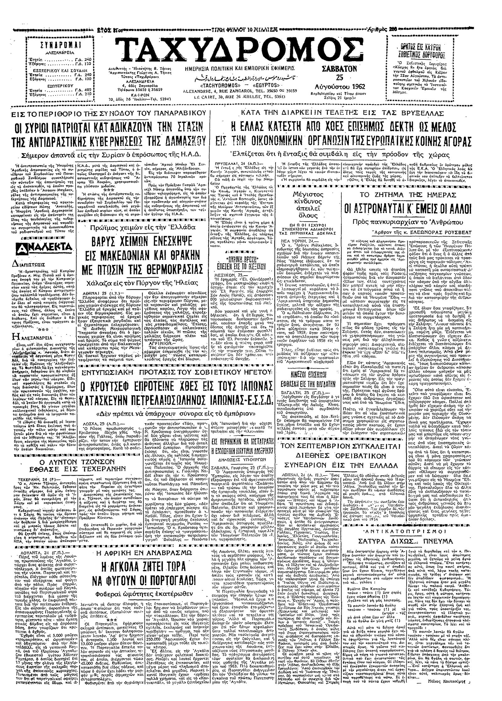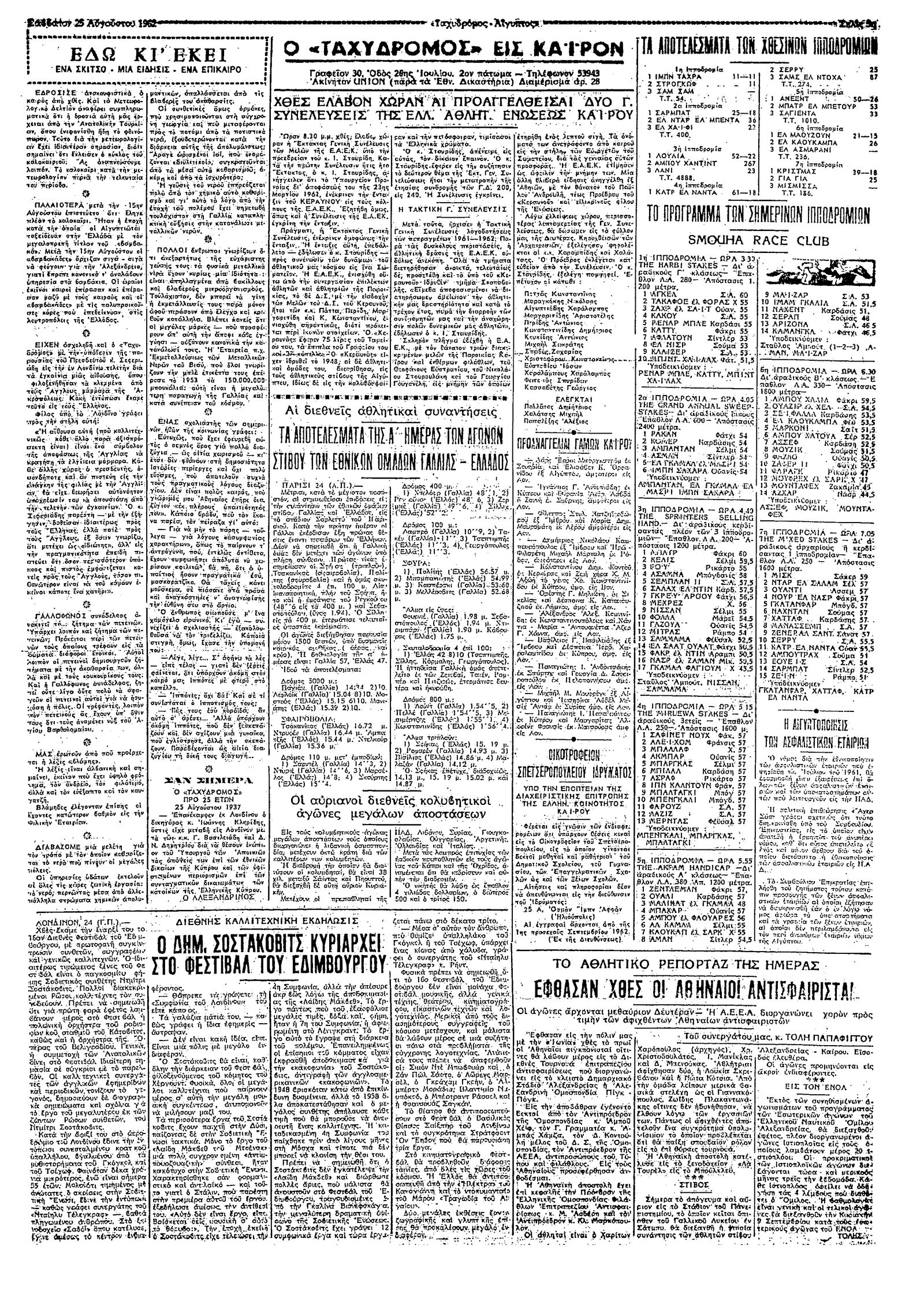 Ταχυδρόμος 25/08/1962