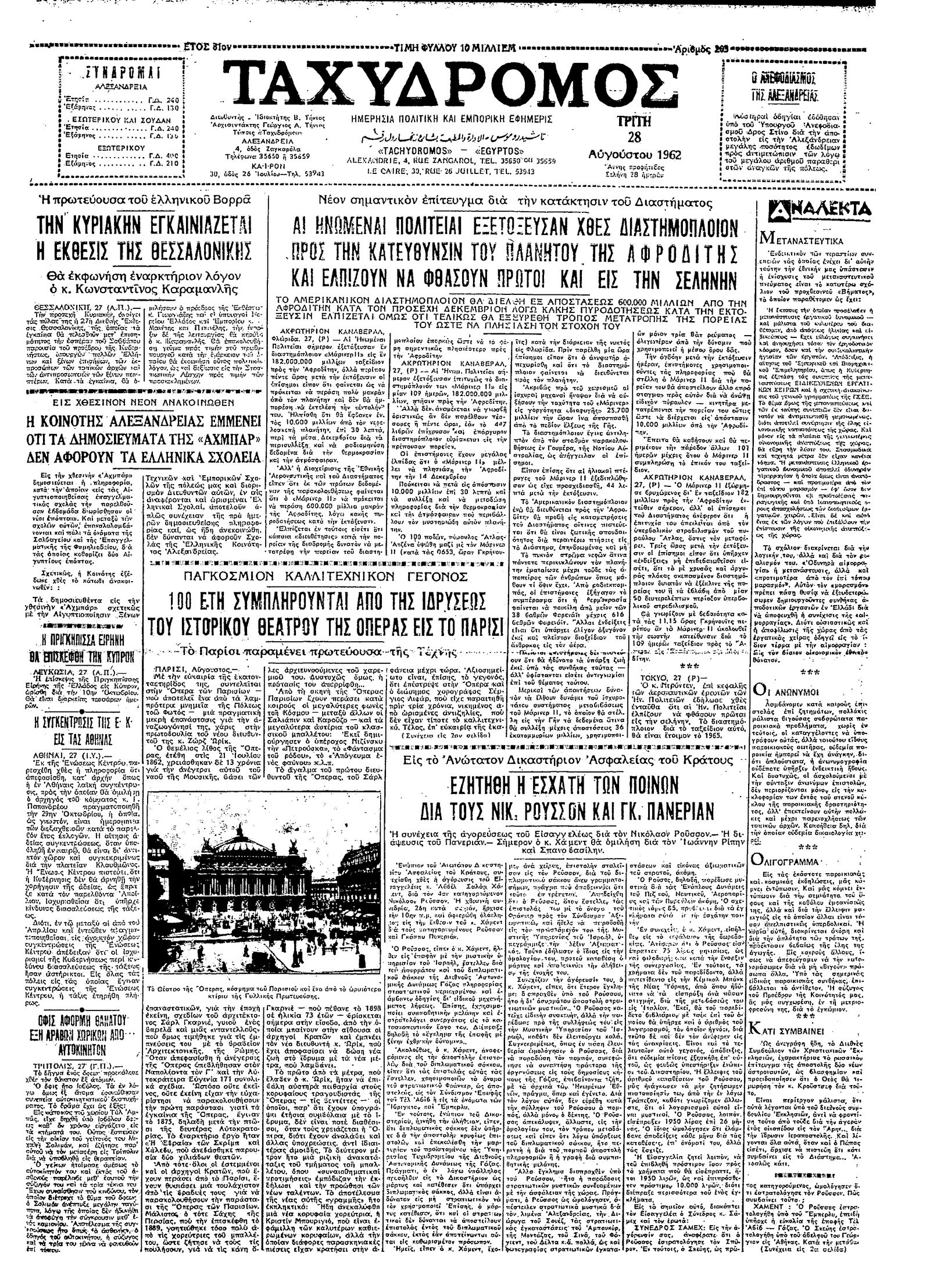 Ταχυδρόμος 28/08/1962
