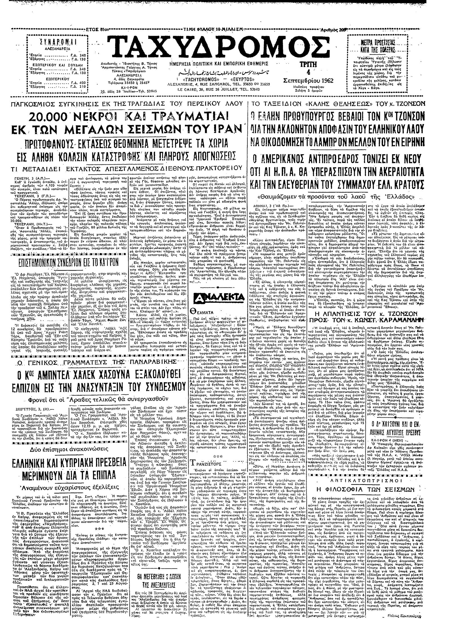 Ταχυδρόμος 04/09/1962