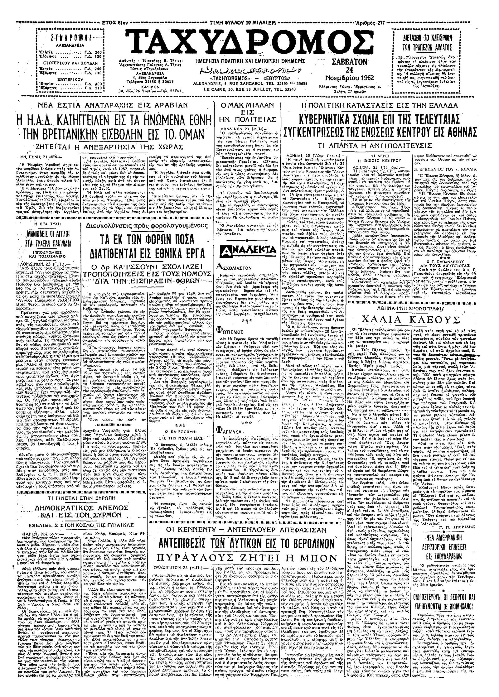 Ταχυδρόμος 24/11/1962