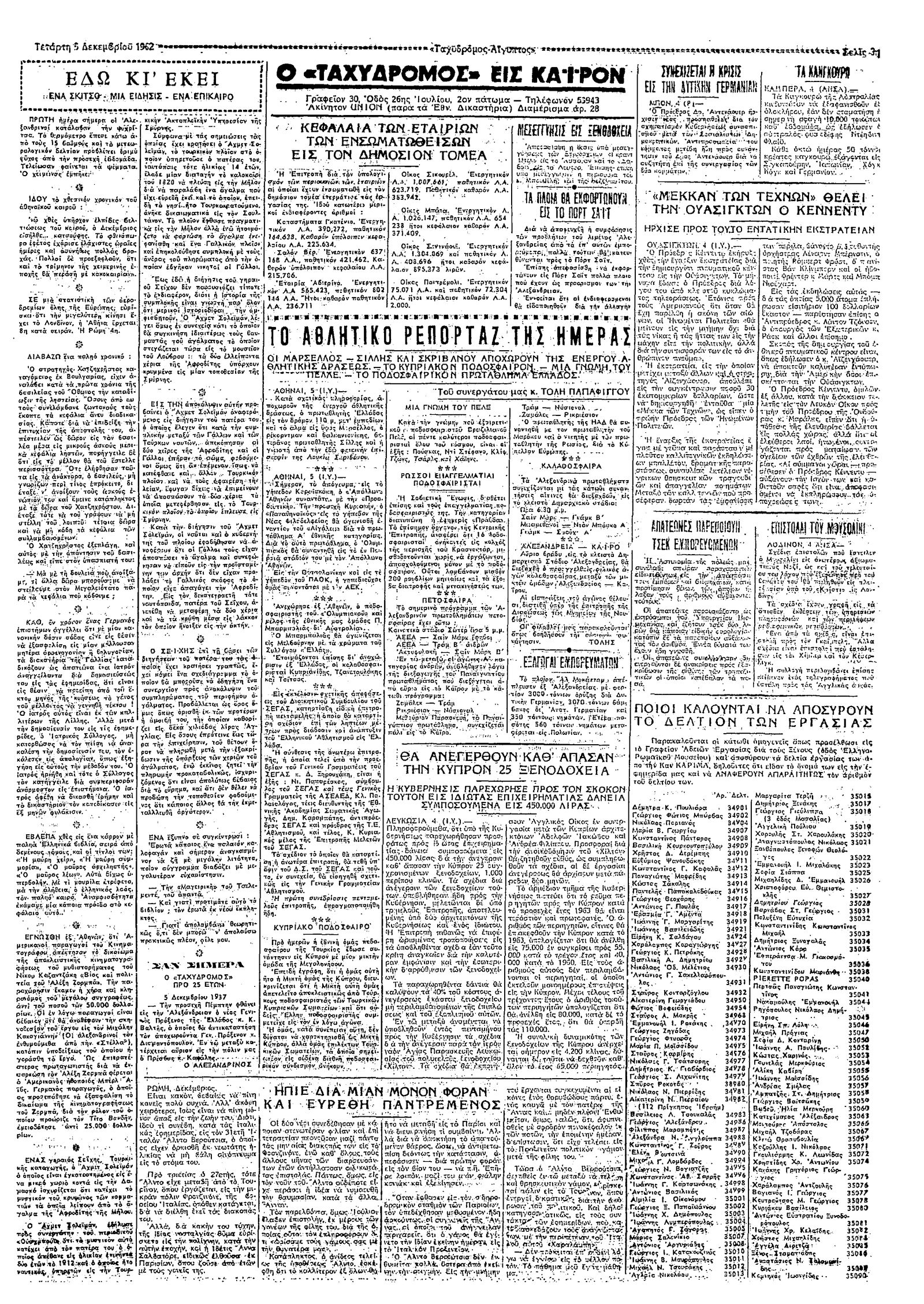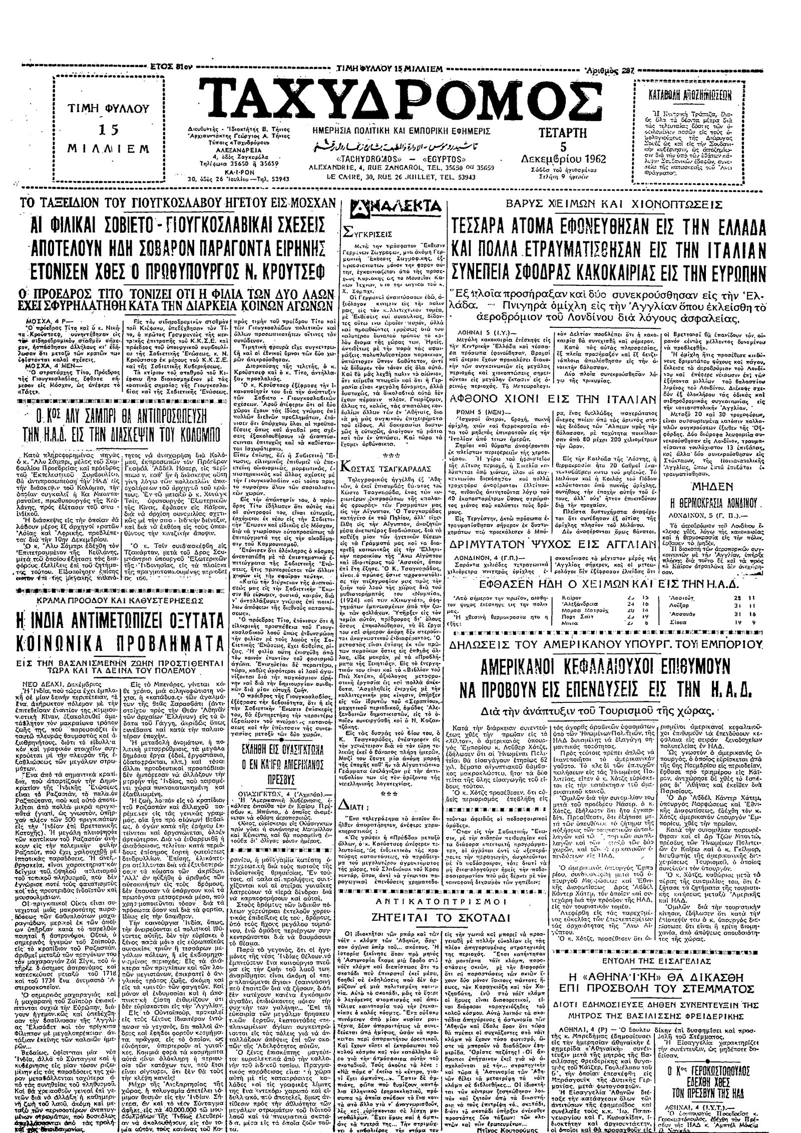 Ταχυδρόμος 05/12/1962