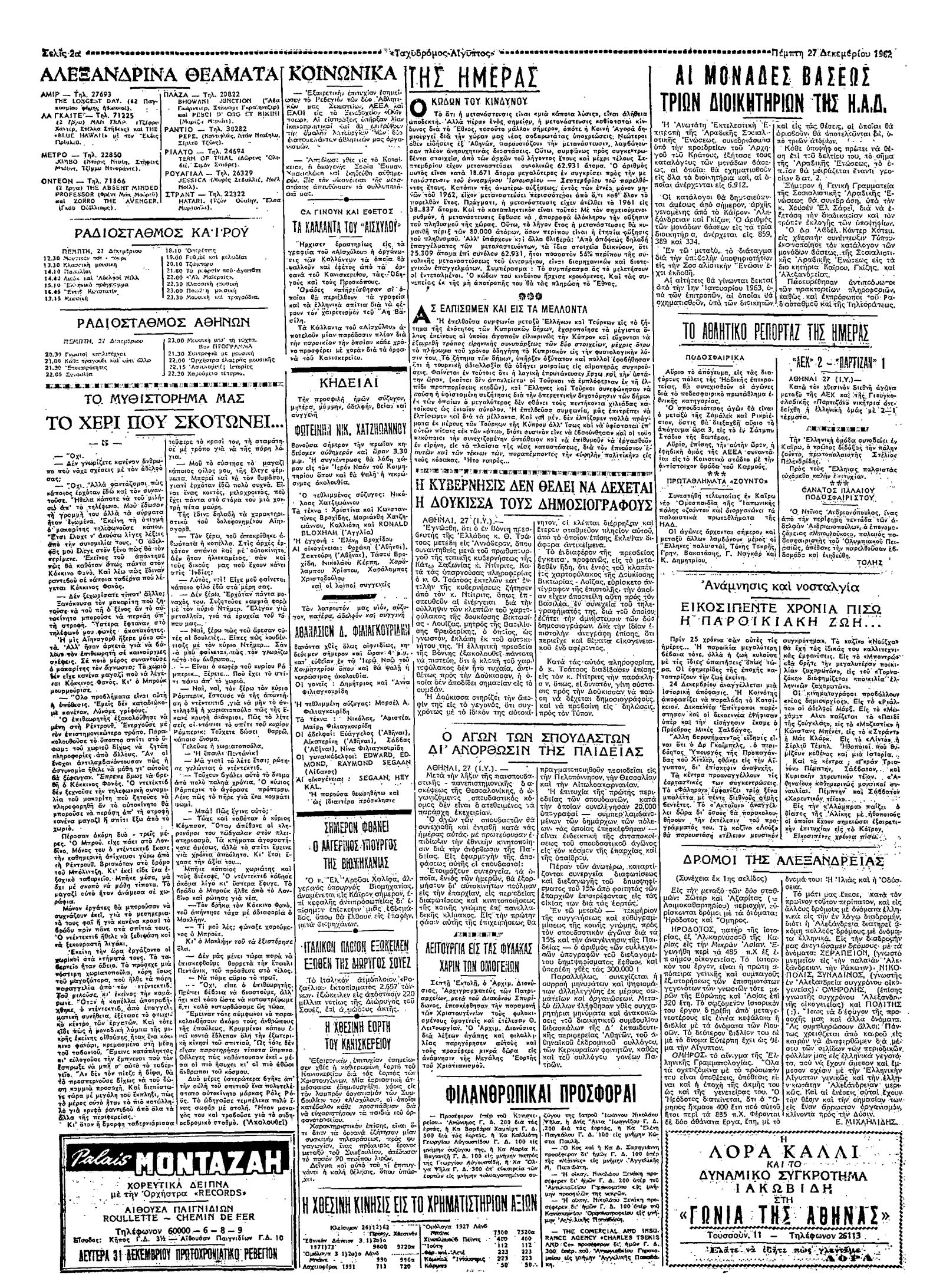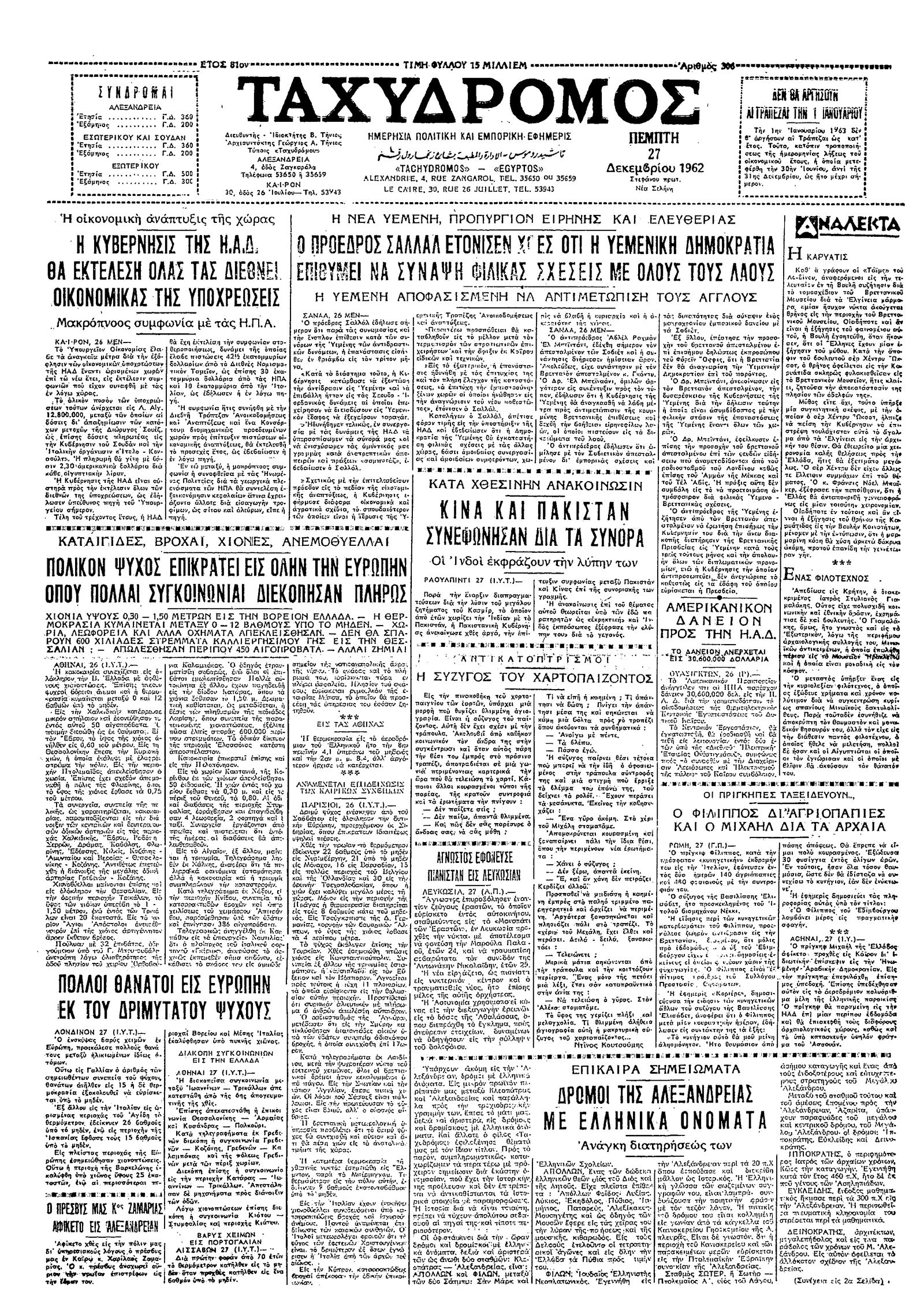 Ταχυδρόμος 27/12/1962