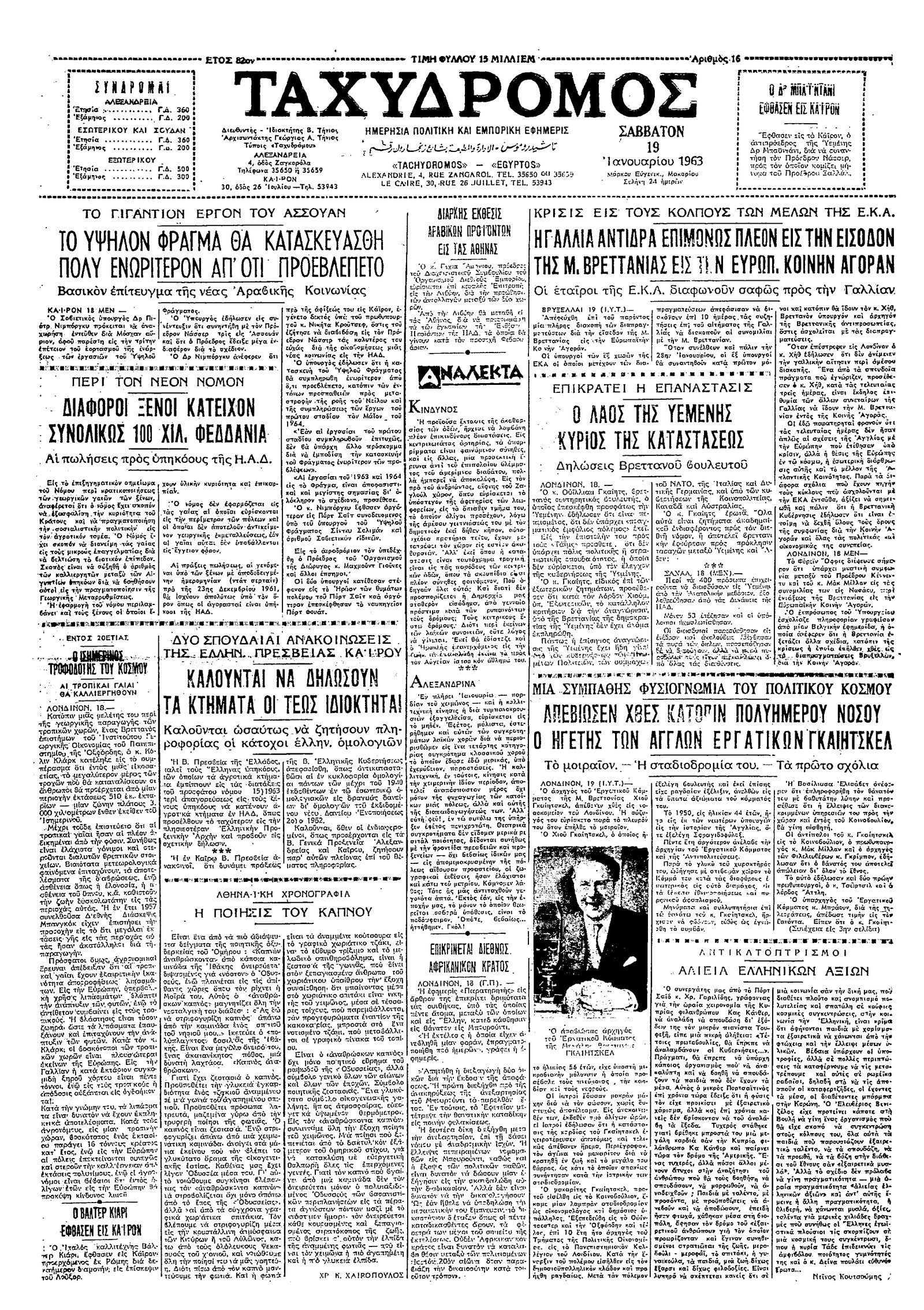 Ταχυδρόμος 19/01/1963