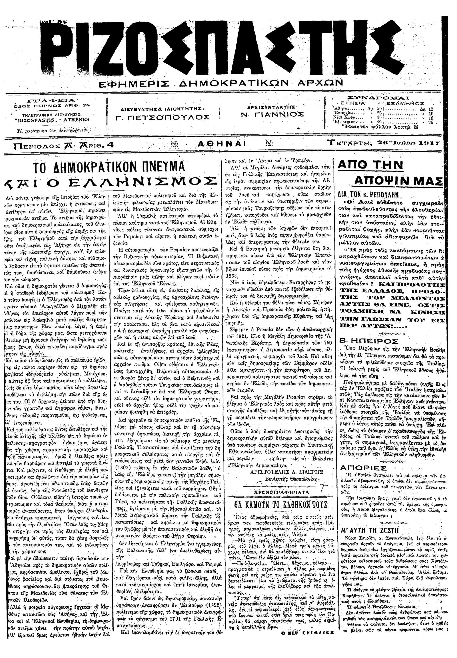 Ριζοσπάστης 26/07/1917