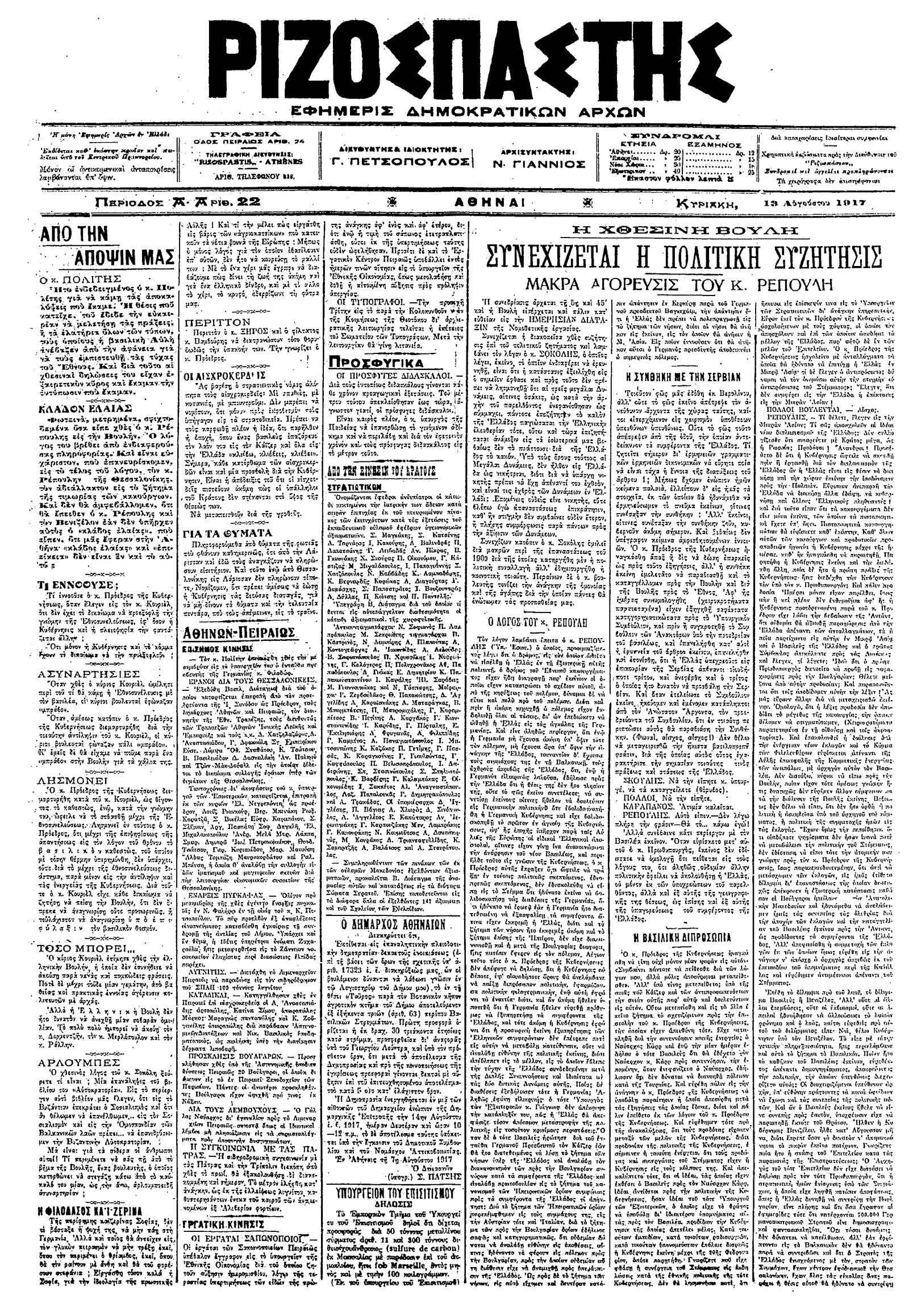 Ριζοσπάστης 13/08/1917