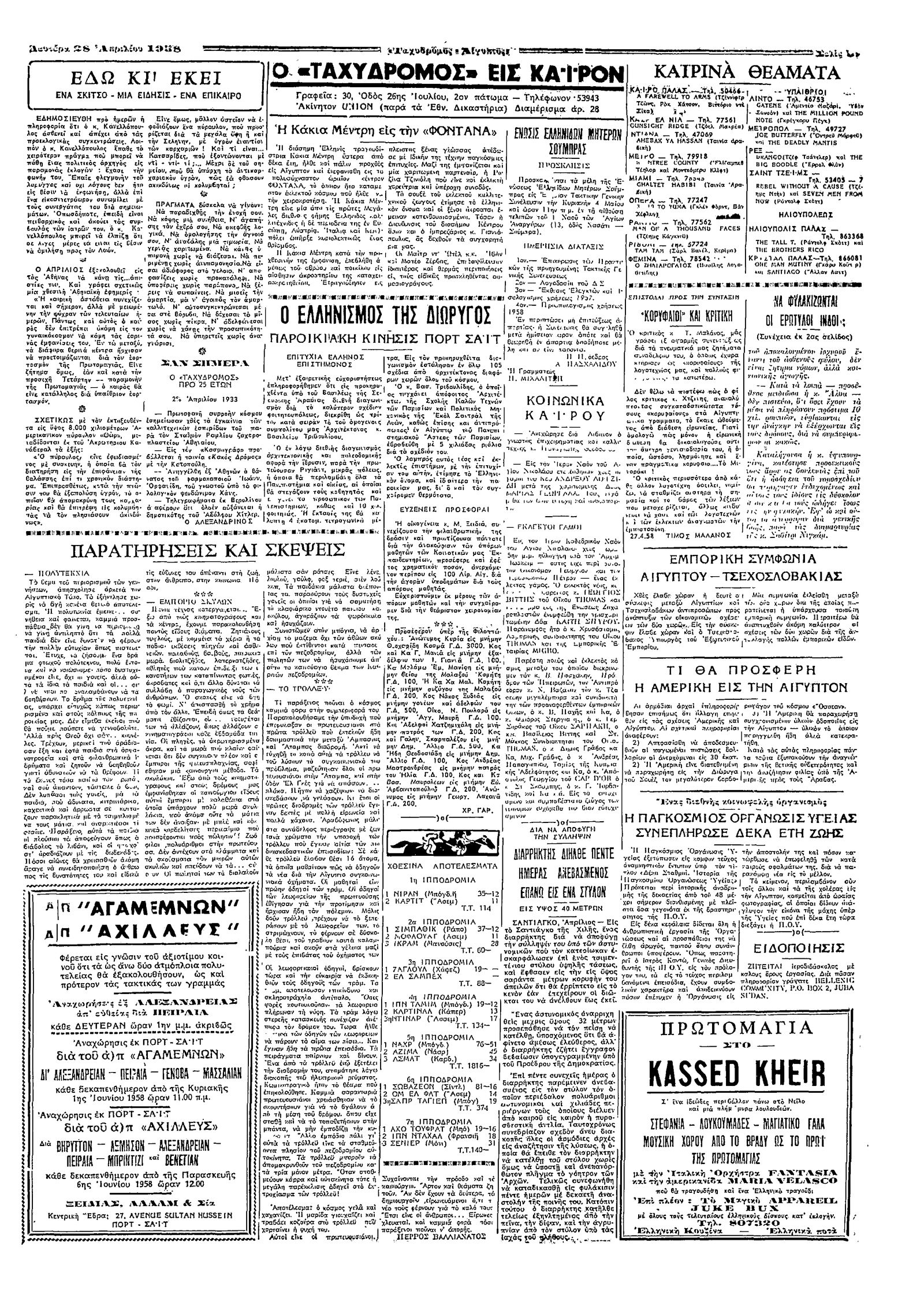 Ταχυδρόμος 28/04/1958