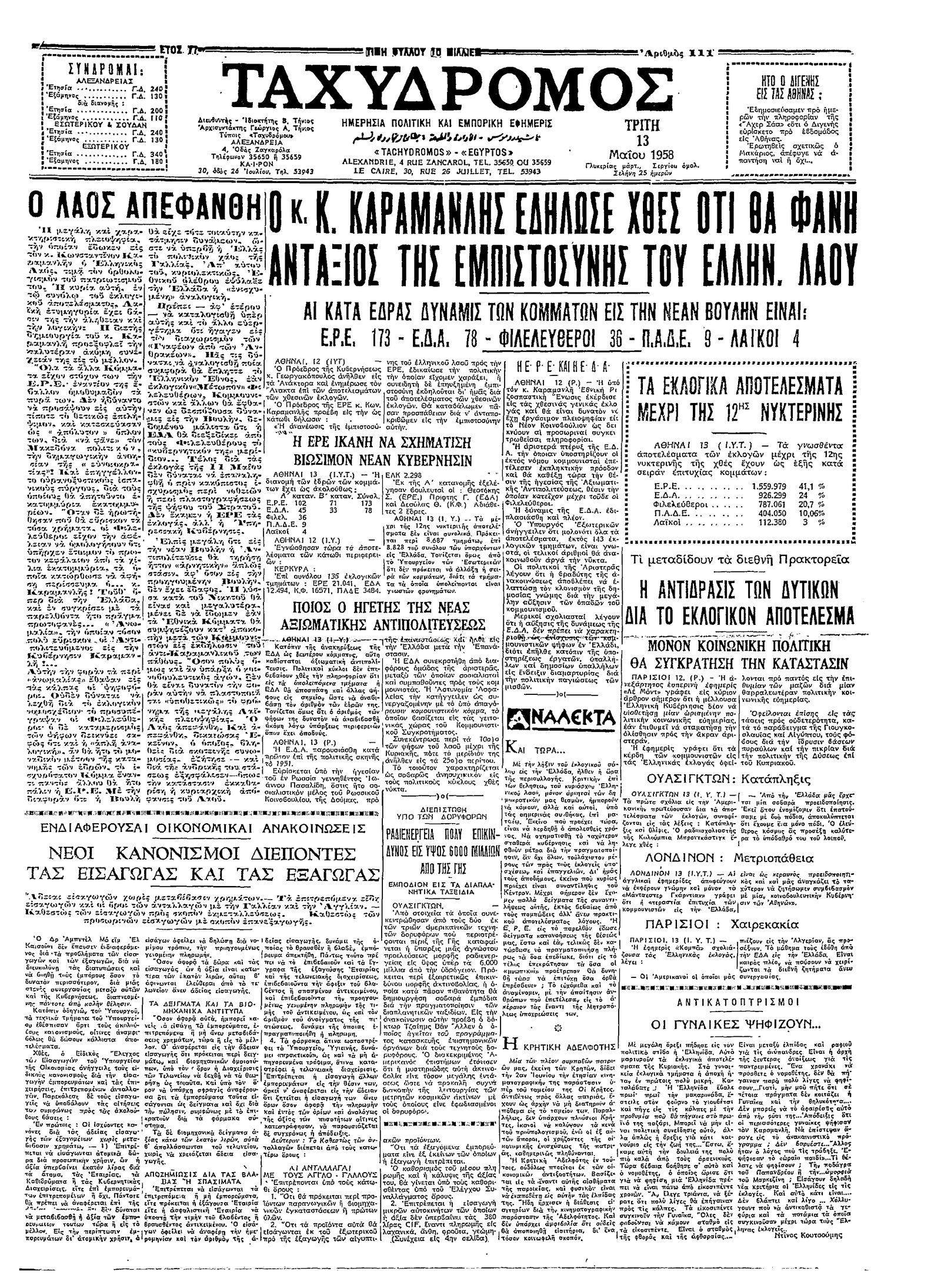 Ταχυδρόμος 13/05/1958