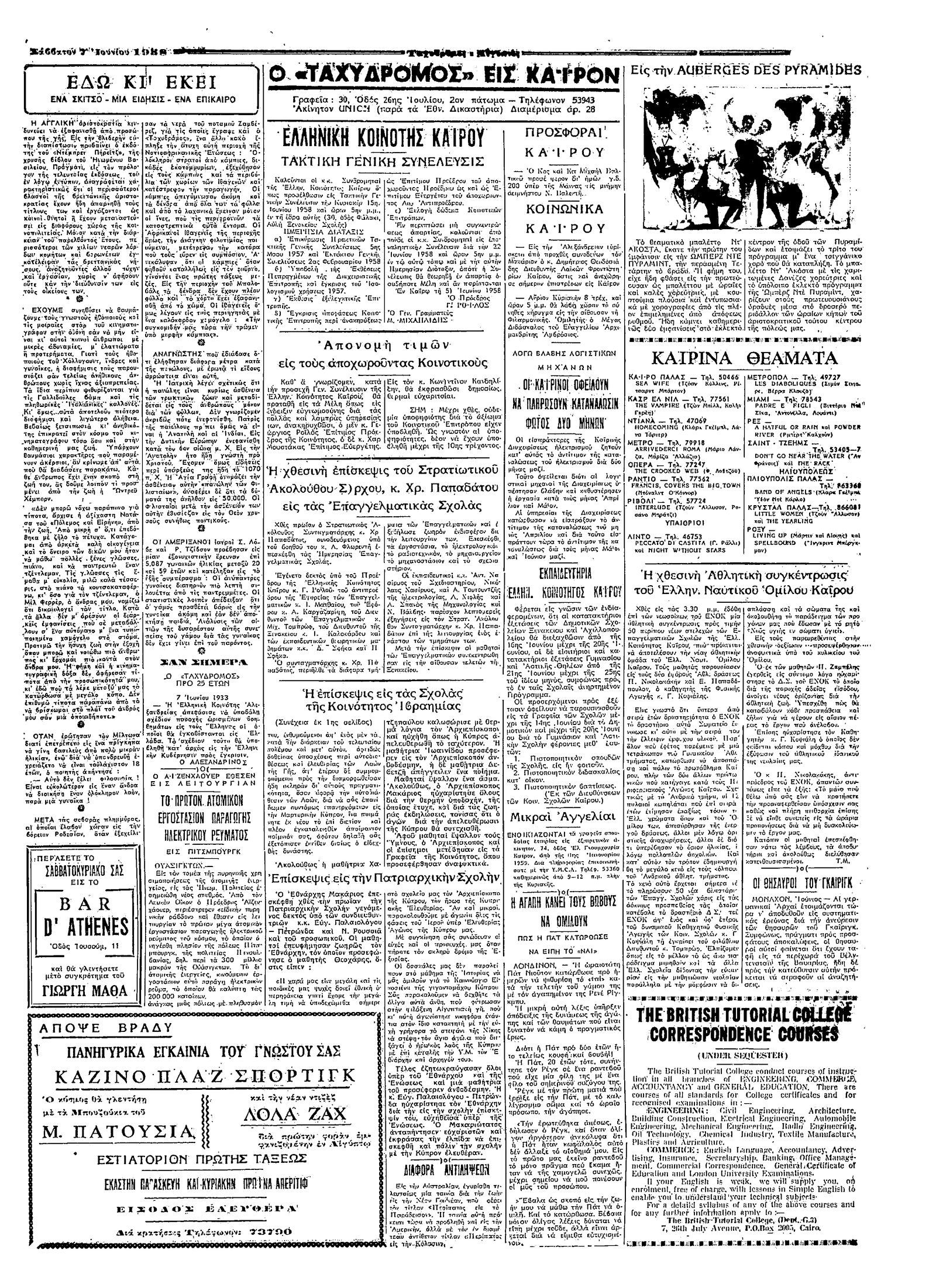 Ταχυδρόμος 07/06/1958