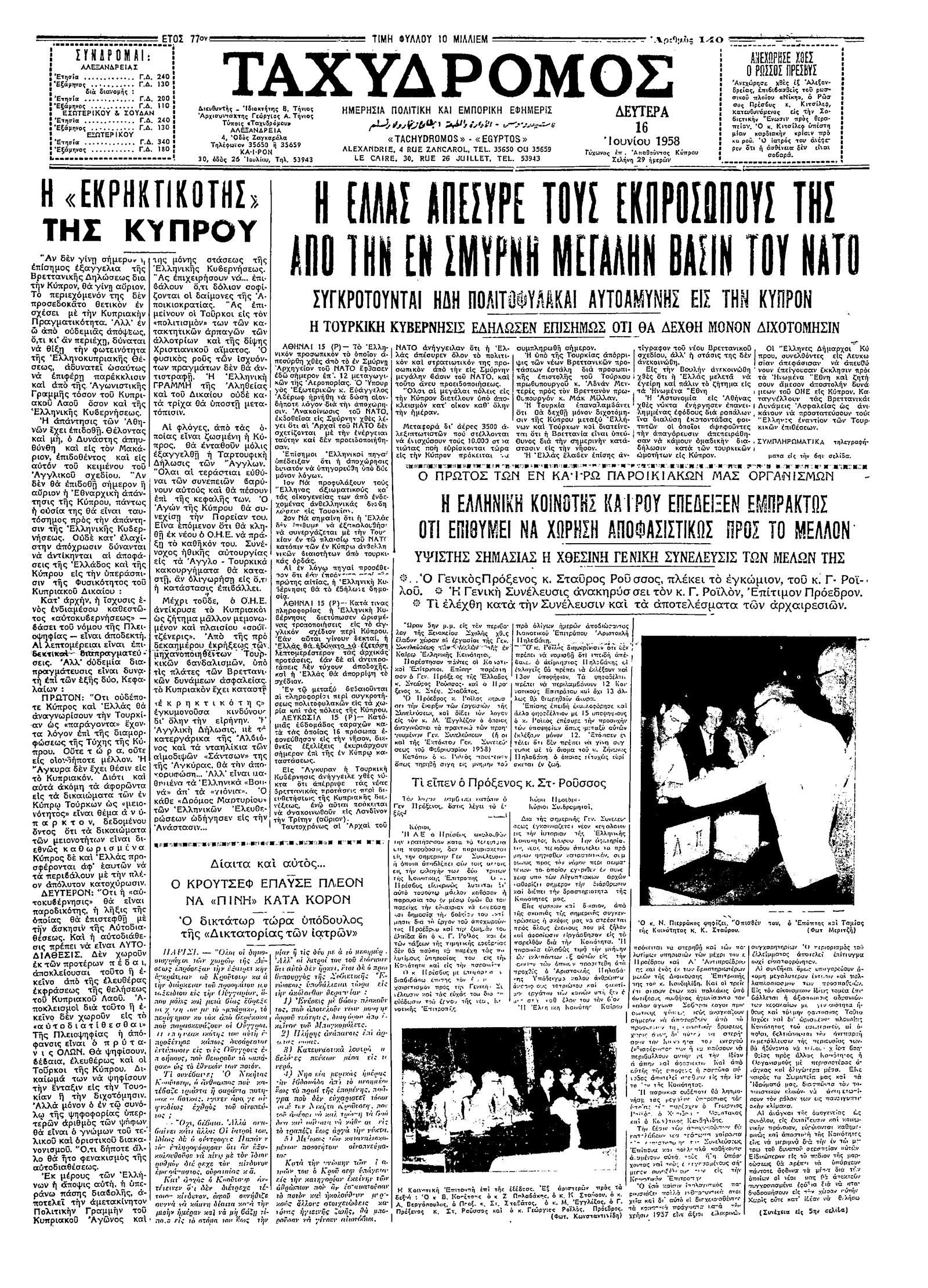 Ταχυδρόμος 16/06/1958
