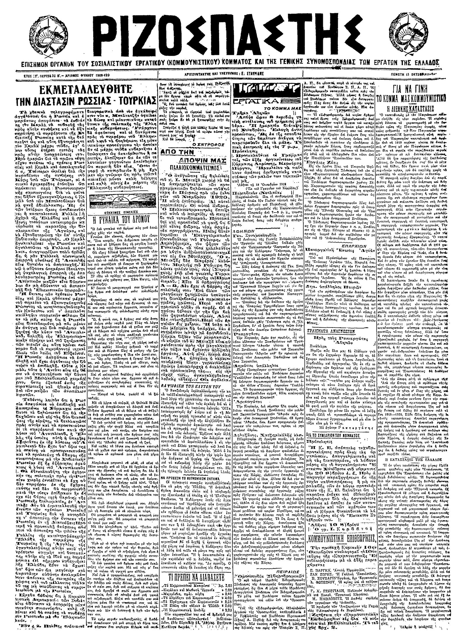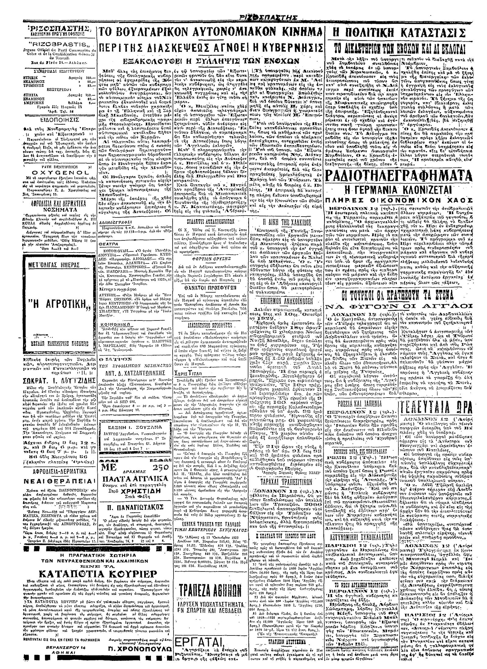 Ριζοσπάστης 13/10/1922