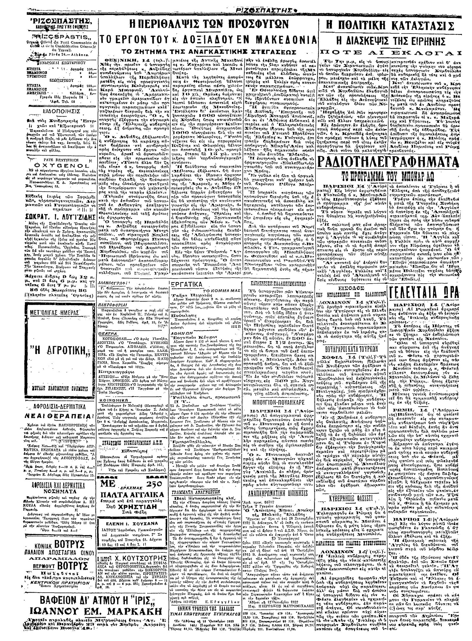 Ριζοσπάστης 15/10/1922