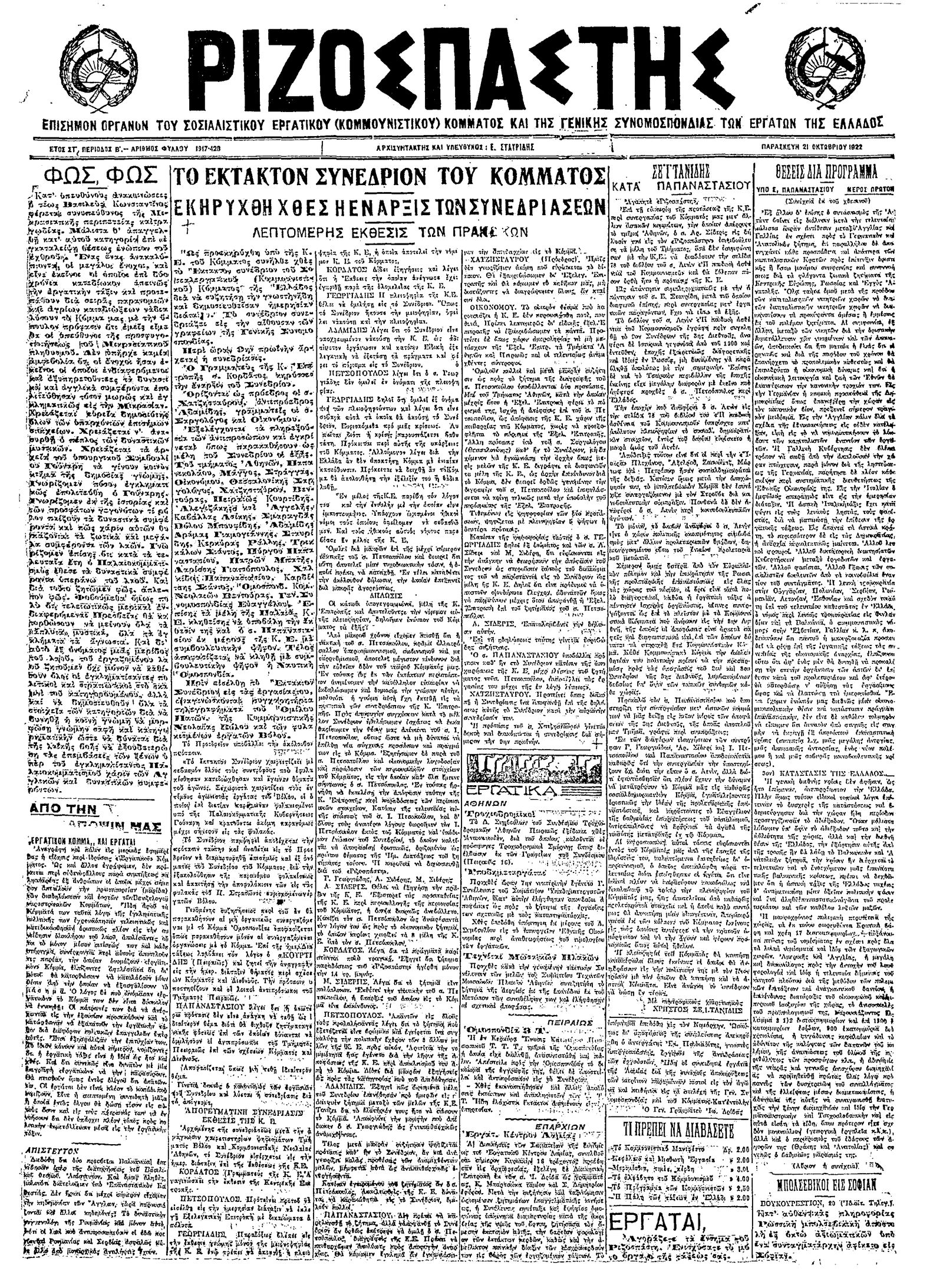 Ριζοσπάστης 21/10/1922