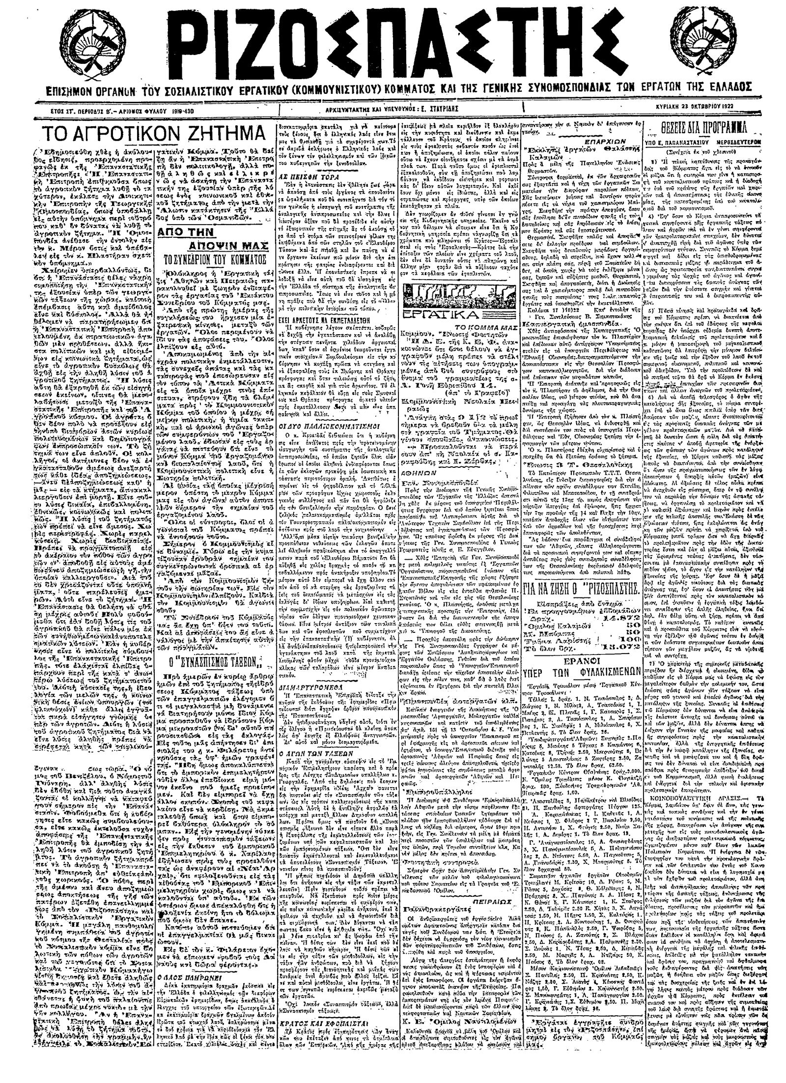 Ριζοσπάστης 23/10/1922