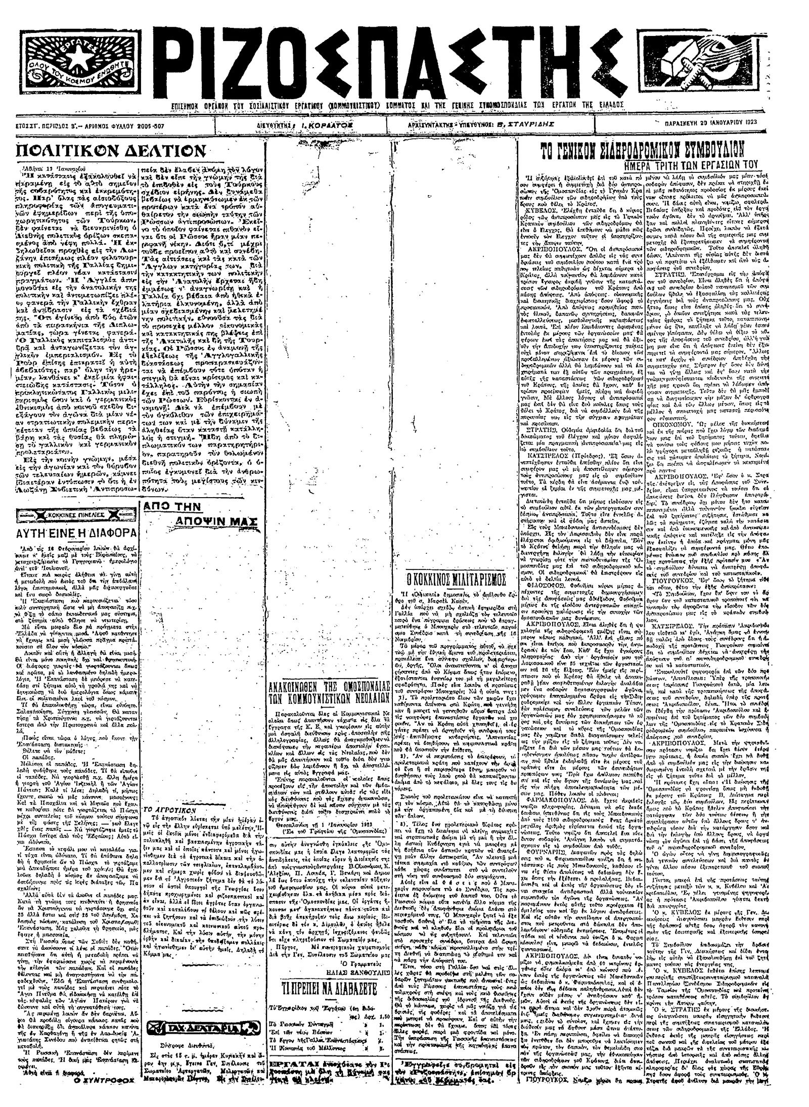 Ριζοσπάστης 20/01/1923